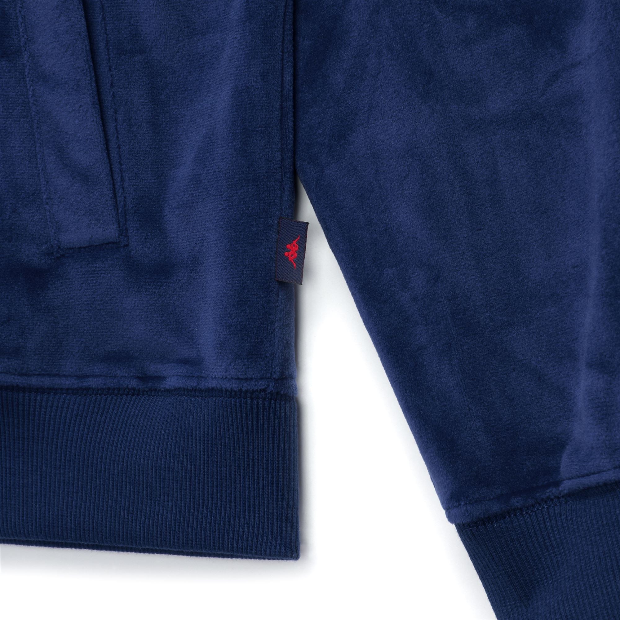 CLASSICO. Hooded woman sweater, with zip clousure, in velluto. SLIM FIT. Satin details. Omini logo applied on chest.