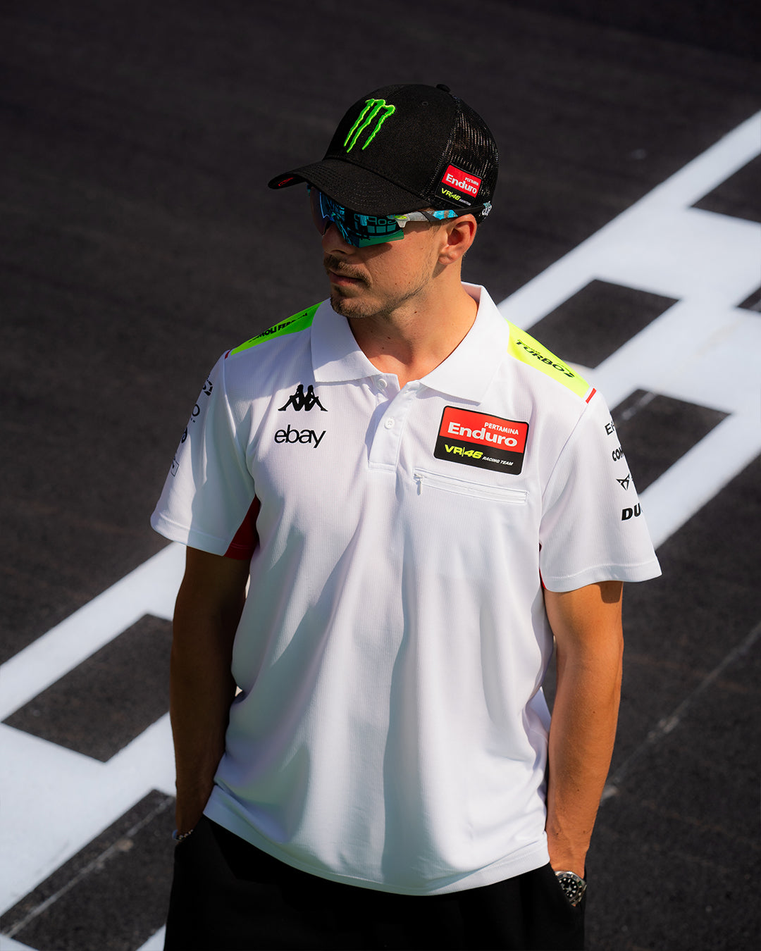 COMPRAR AHORADescubre la nueva edición limitada White Collection del Team VR46, un homenaje a la historia del equipo, que ahora se viste de blanco para el GP de San Marino y la Riviera de Rimini. El blanco como símbolo de nuevos comienzos, un punto de partida. Un polo y una sudadera que celebran el pasado a la vez que abrazan el futuro. ¡No te pierdas la colección más exclusiva del año!