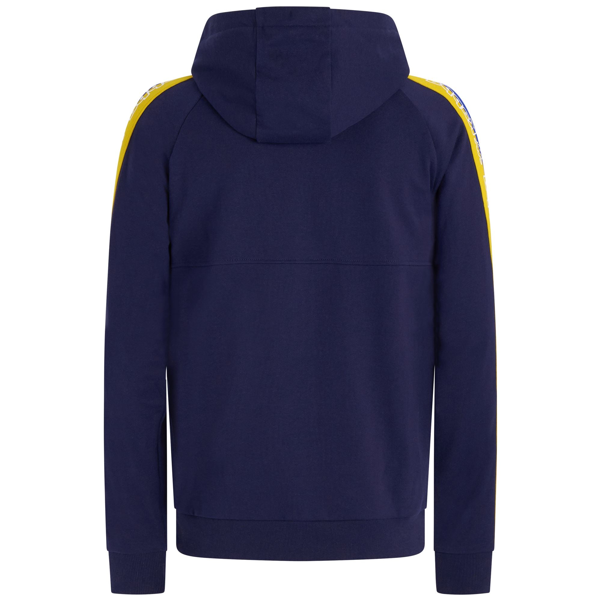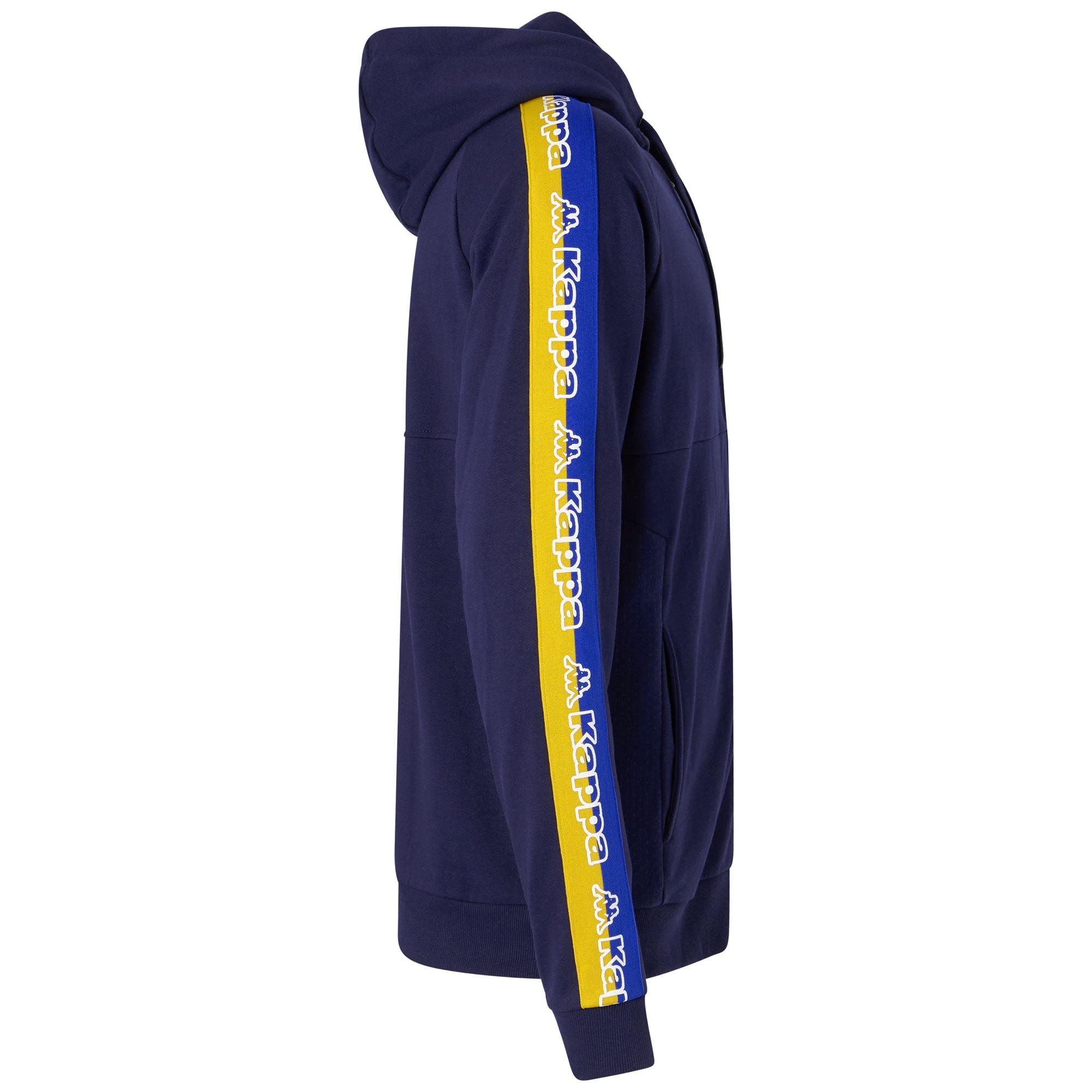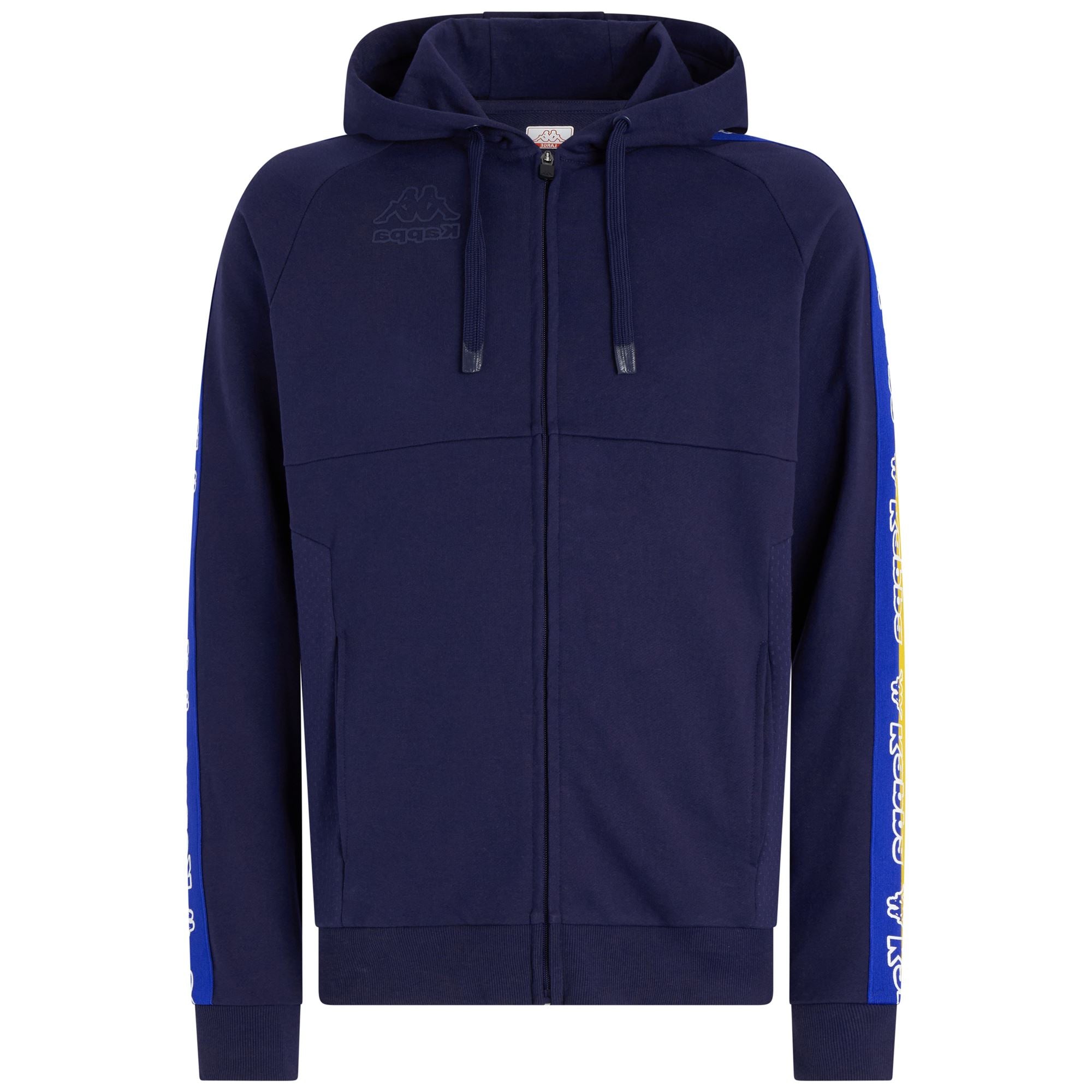 Capucha, cremallera frontal, bolsillos laterales, mangas largas.