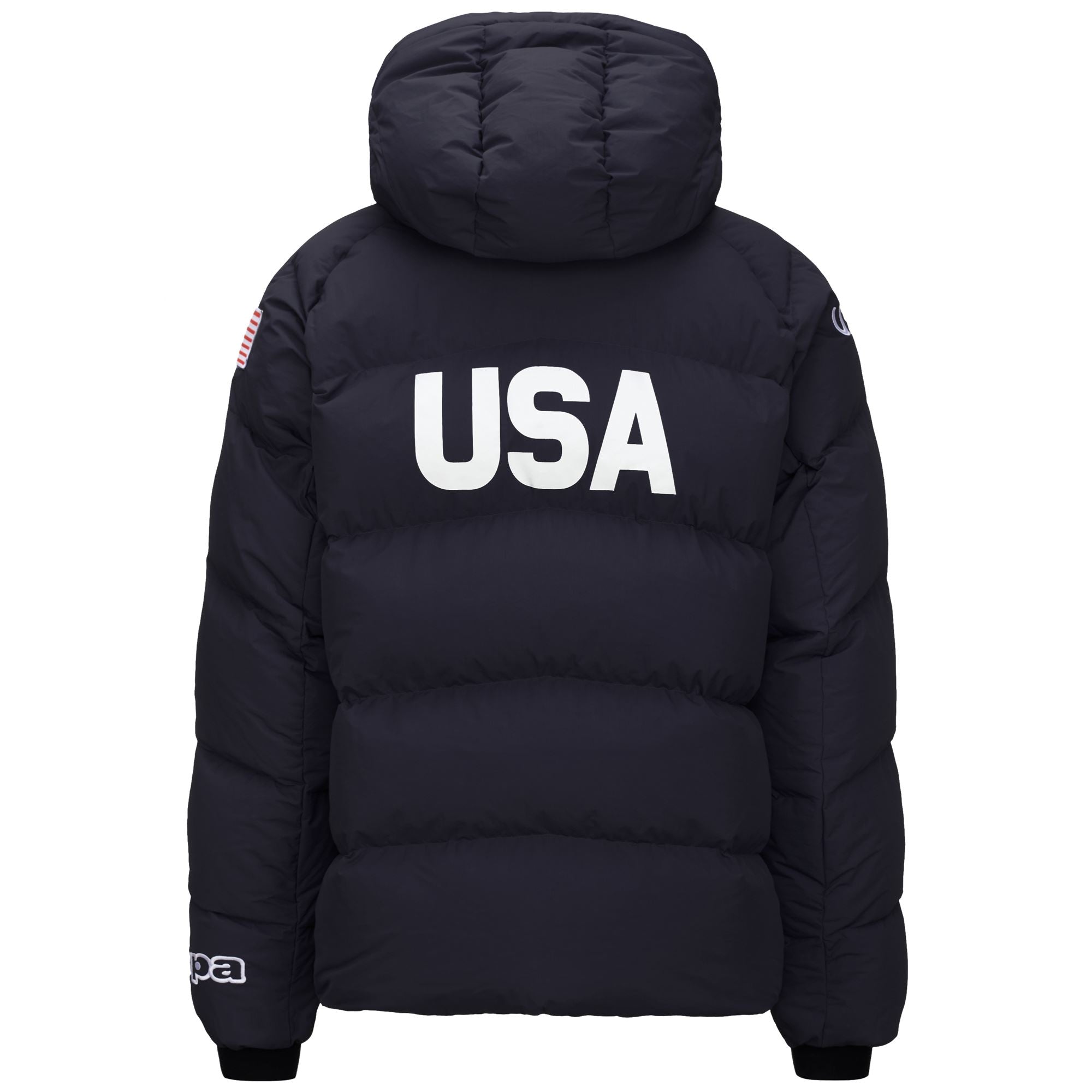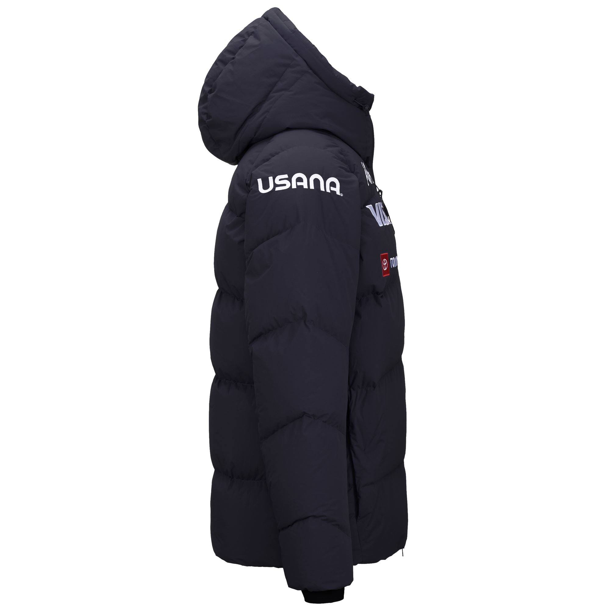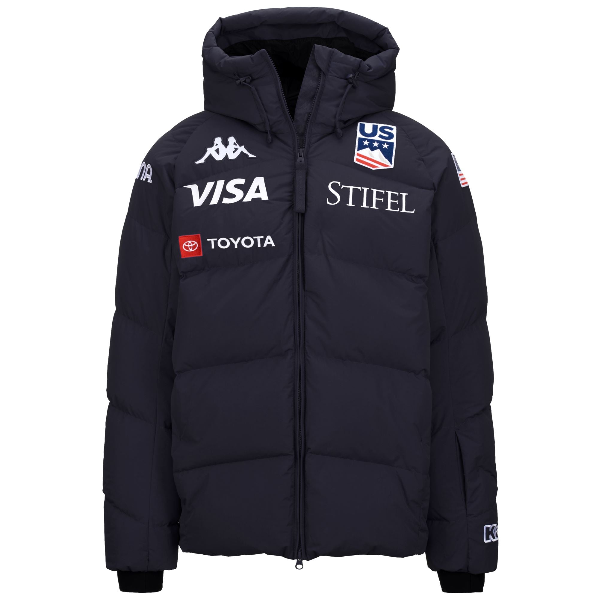 Chaqueta para hombre hecha de tela ripstop de 2 capas con aislamiento de plumón certificado con un poder de relleno de 600 por el Responsible Down Standard de Textile Exchange. A prueba de agua. Cuenta con una capucha fija y ajustable, refuerzos en los hombros, cierre de cremallera frontal, bolsillos en el pecho y puños de poliéster elástico. Incluye logo Omini bordado y personalizaciones del equipo US SKI AND SNOWBOARD.