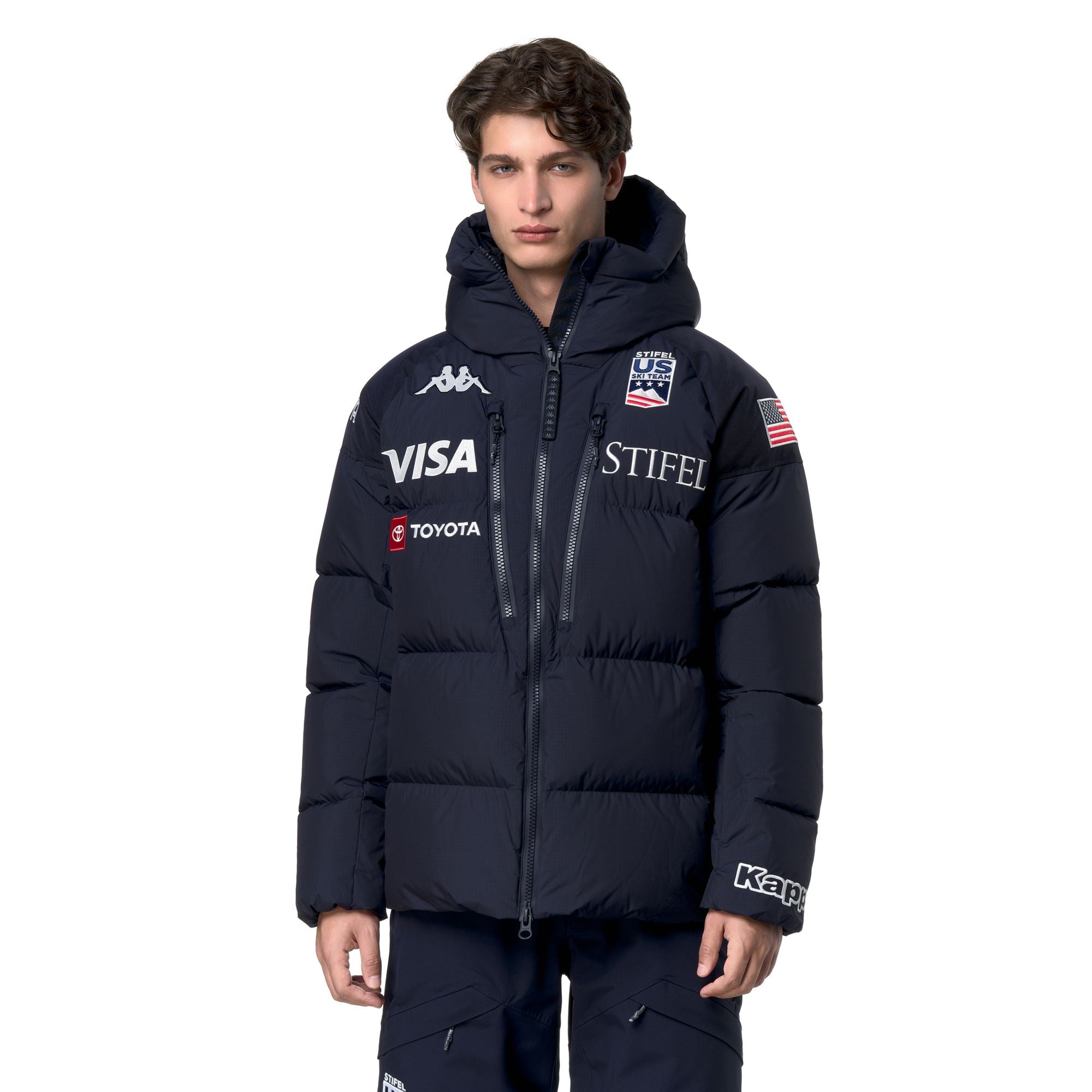 El corte regular garantiza un ajuste cómodo y funcional. Incluye capucha fija ajustable, cierre frontal con cremallera, bolsillos laterales, refuerzos en zonas estratégicas y puños elásticos. Entre los detalles característicos, destacan el logotipo Omini y las personalizaciones de US Ski y Snowboard Team.