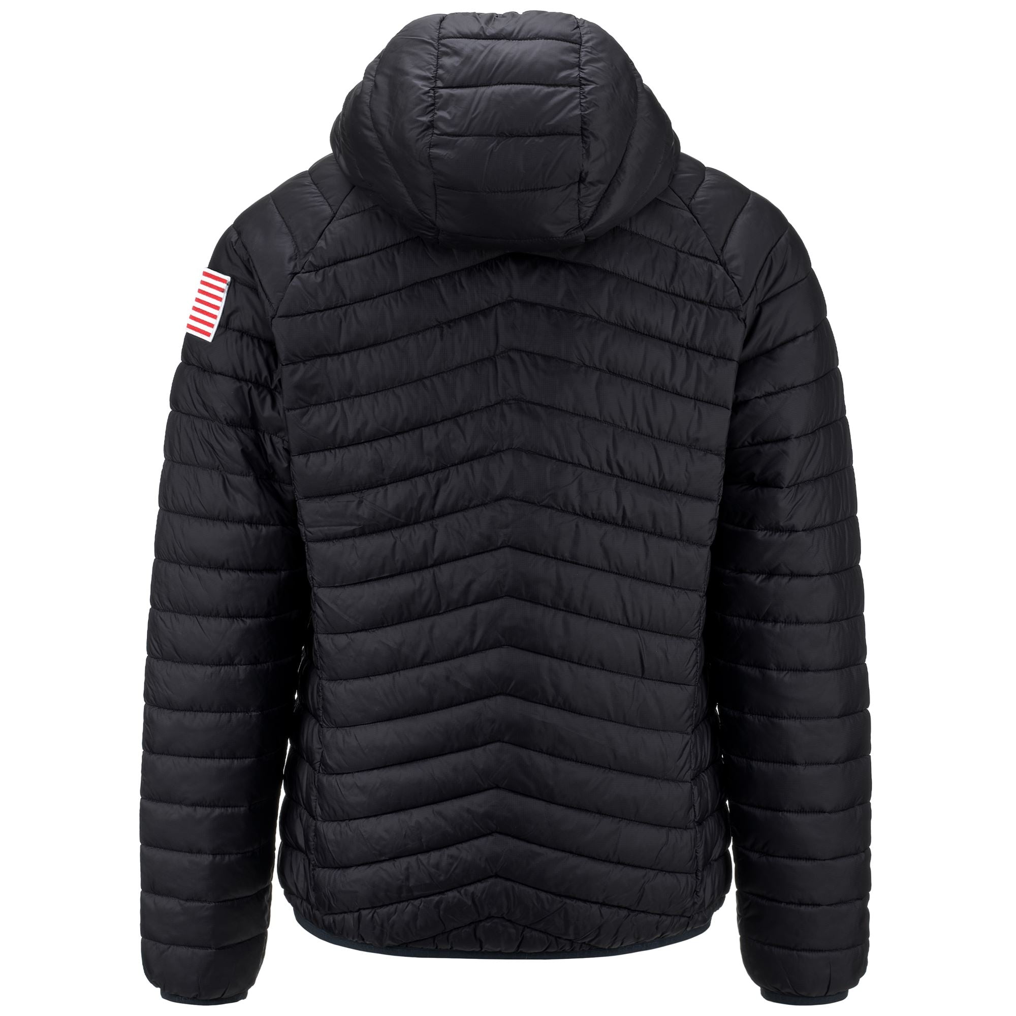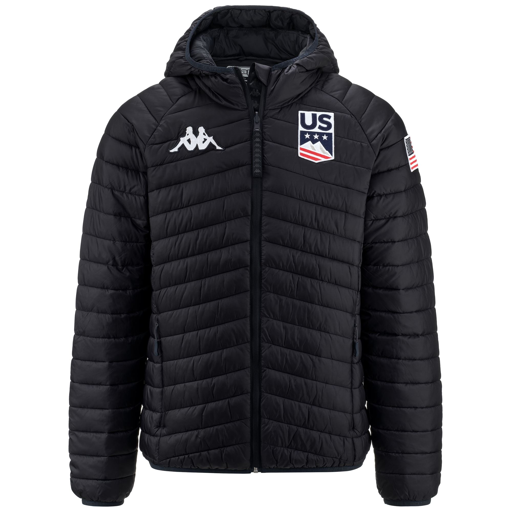 Chaqueta unisex acolchada hecha de tela ripstop con aislamiento Primaloft®. Impermeable. Cuenta con una capucha fija y bolsillos laterales con cremalleras. Logotipo Omini bordado y personalizaciones del equipo US SKI AND SNOWBOARD.