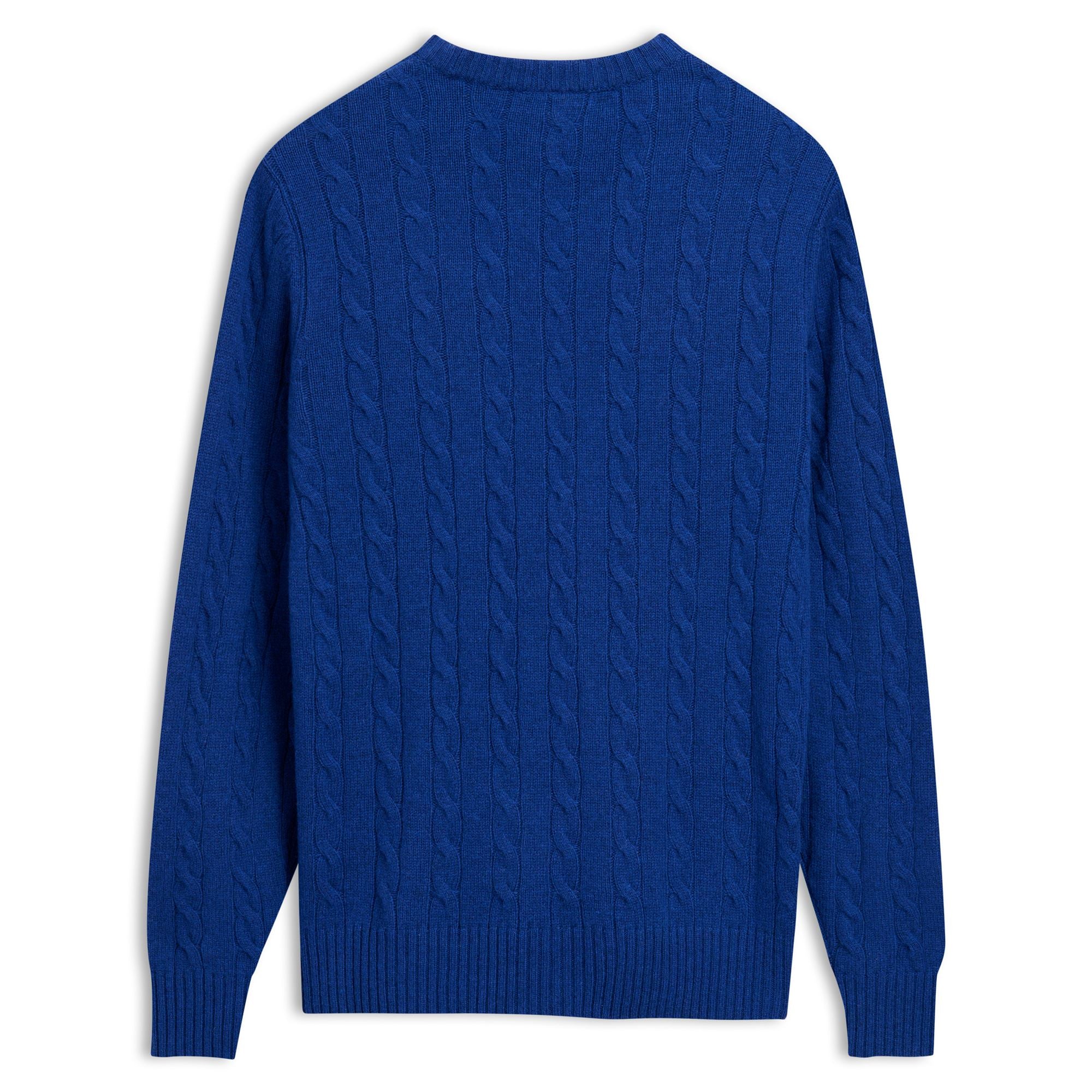 CLÁSICO. Suéter de cuello redondo en lana de cordero. AJUSTE SLIM. Tricot de cable. Bordes de canalé. Parche Omini en el pecho.