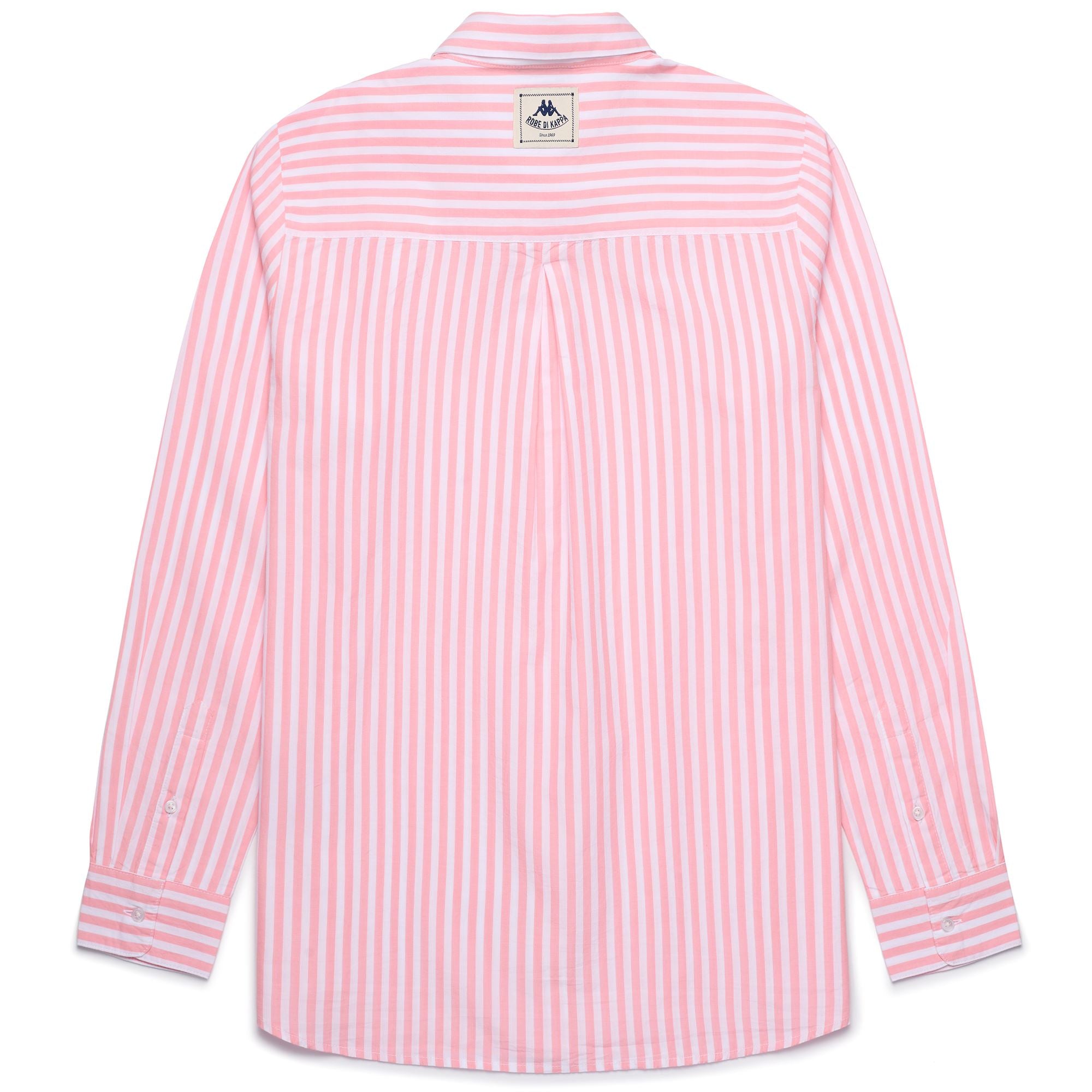 COLECCIÓN. Camisa de mujer en popelín a rayas. CORTE REGULAR. Etiqueta de jacquard con personalización de Robe di Kappa aplicada en la parte central de la espalda.