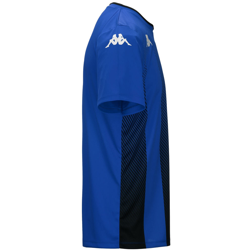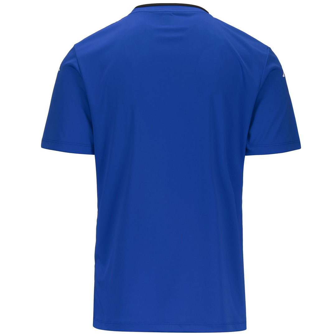 KAPPA4TEAM. Maglia gioco per uomo in tessuto interlock. SLIM FIT. Manica corta, girocollo e righe stampate in sublimazione sul pannello frontale. Logo Omini sul fronte e sulle maniche stampati.