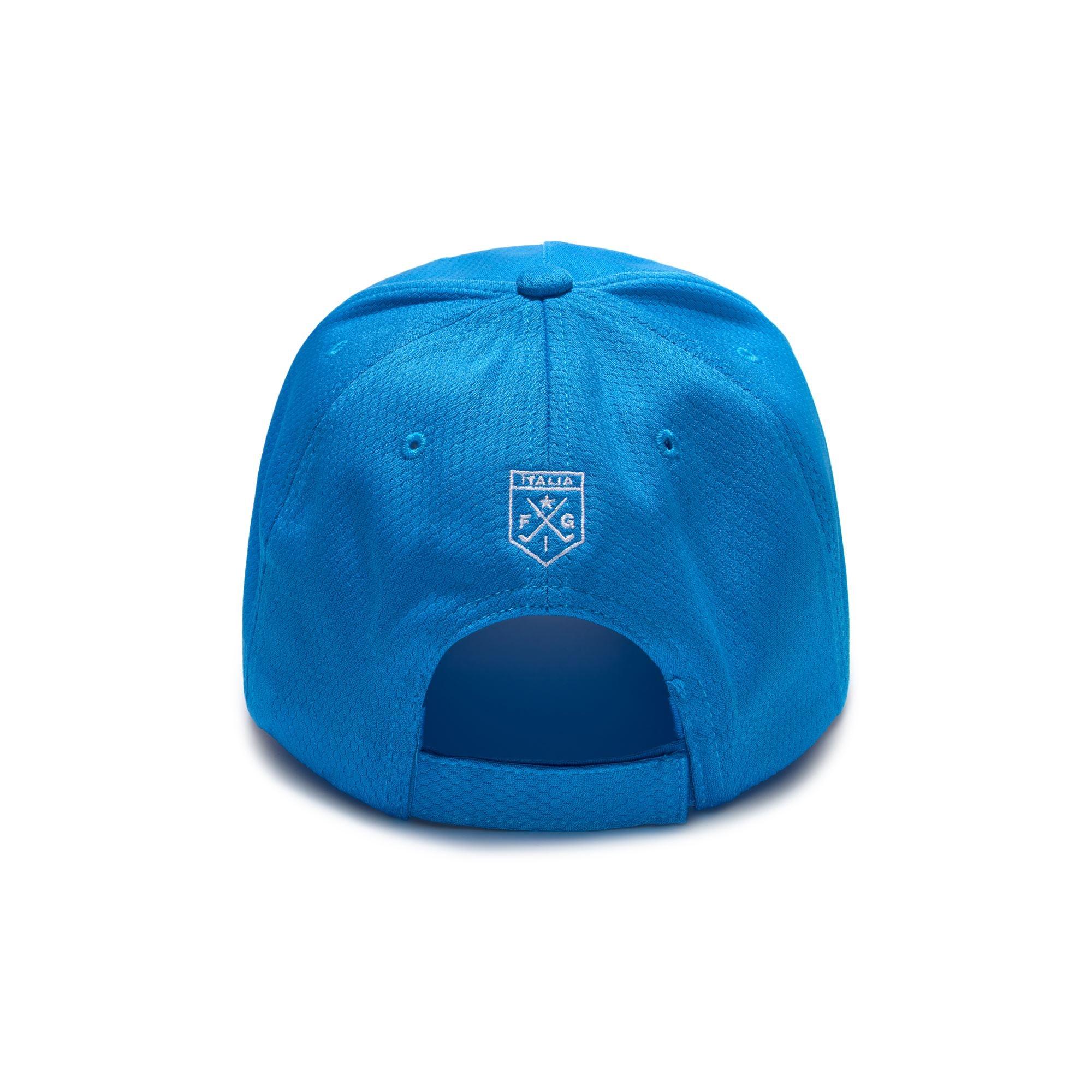 GARA Cappellino con visiera in tessuto poliestere texturizzato. Chiusura con strappo sul retro. Logo Omini in ricamo 3D applicato sul fronte e logo FIG ricamato sul retro, logo Team patch ricamato sulla visiera. FEDERAZIONE ITALIANA GOLF.