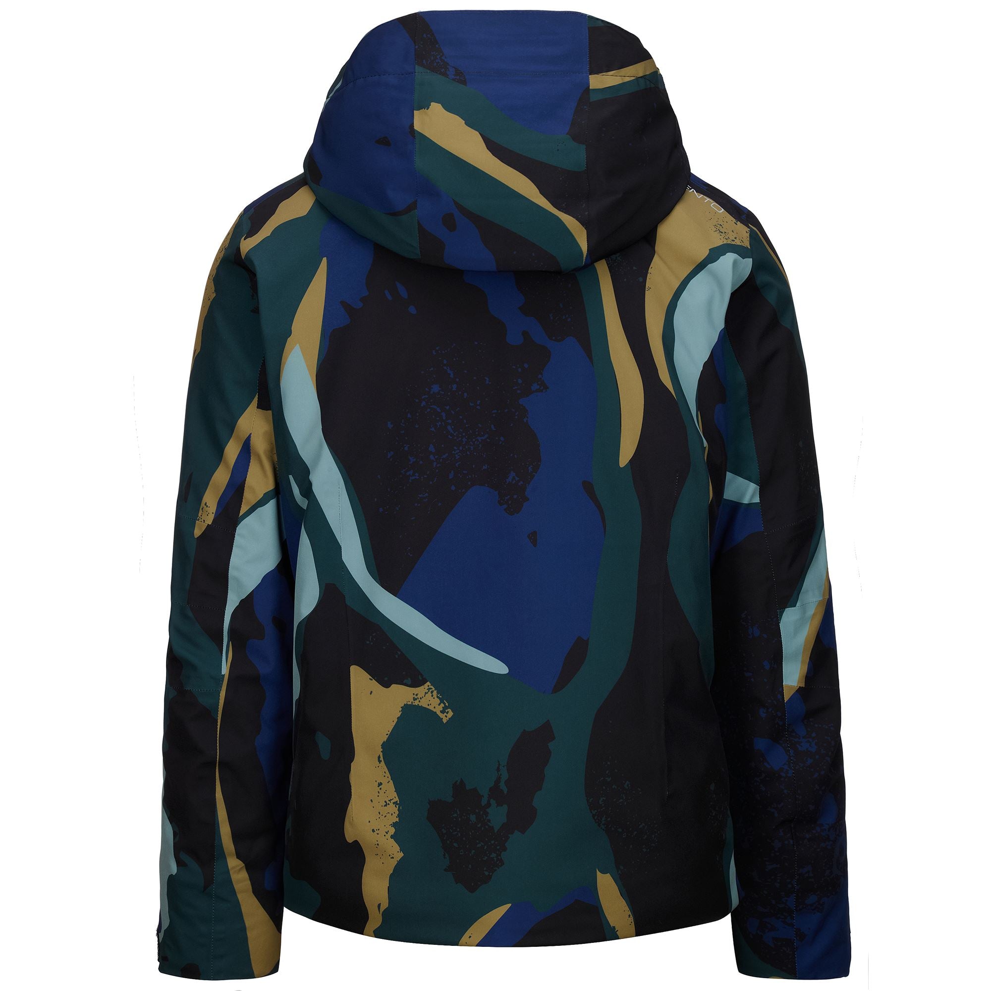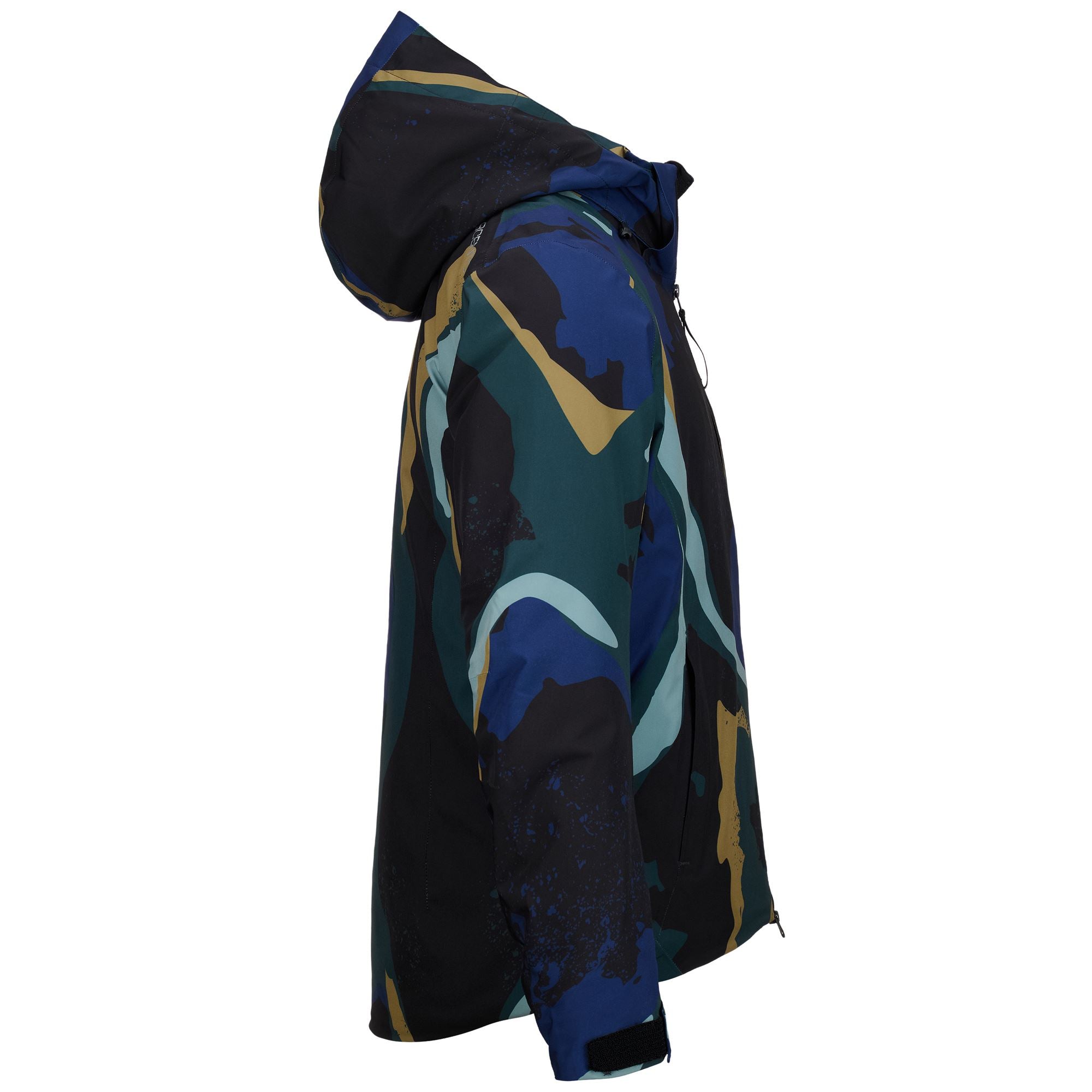 Cappuccio staccabile, tasche con patta e chiusura zip, zip di ventilazione, ghetta interna, polsini in tessuto elasticizzato, cuciture termonastrate, regolazioni, grafica all-over.