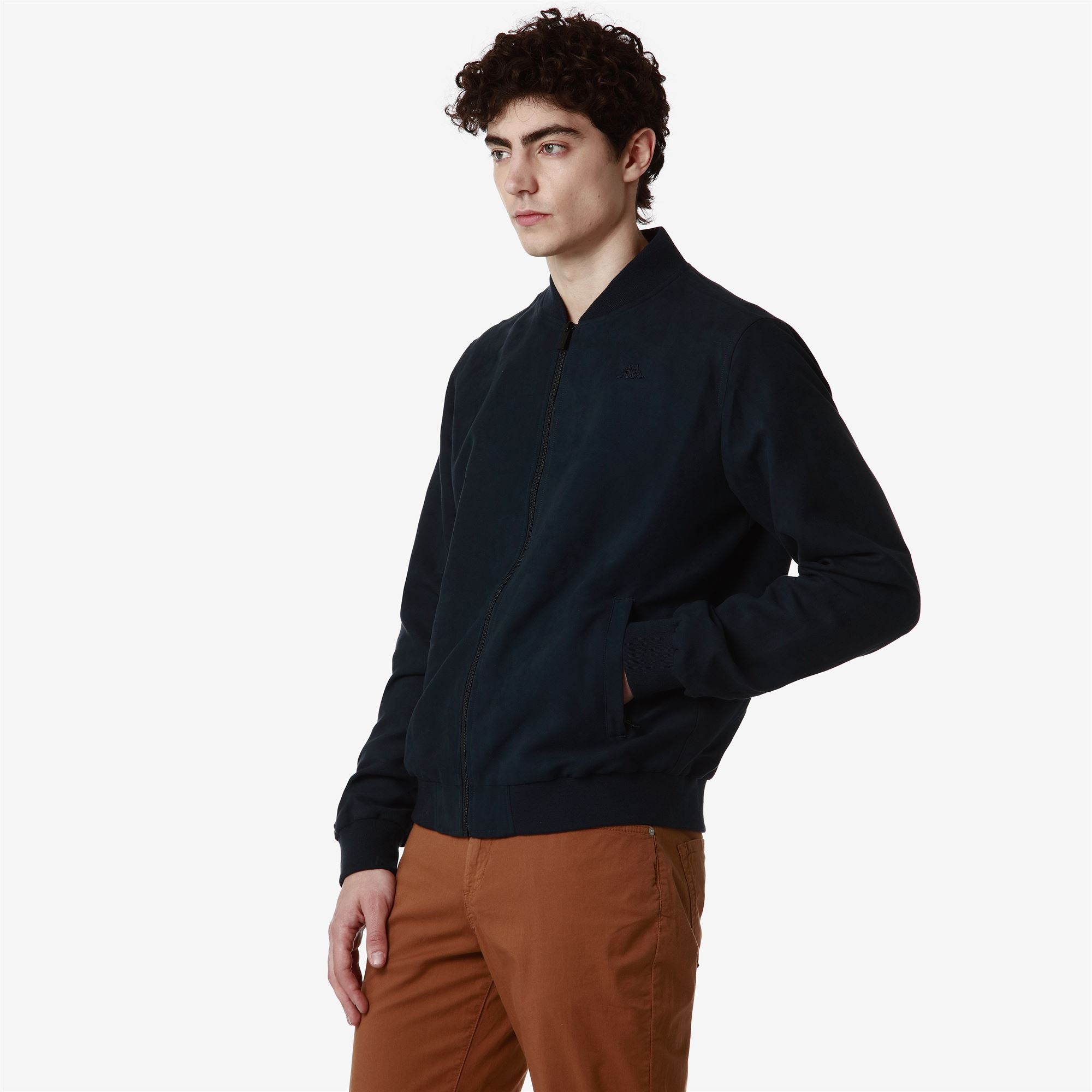 CLASSICO. Giacca corta, in simil suede. Foderata. Bordo fondo e polsi in costina. Logo omini gommato.
