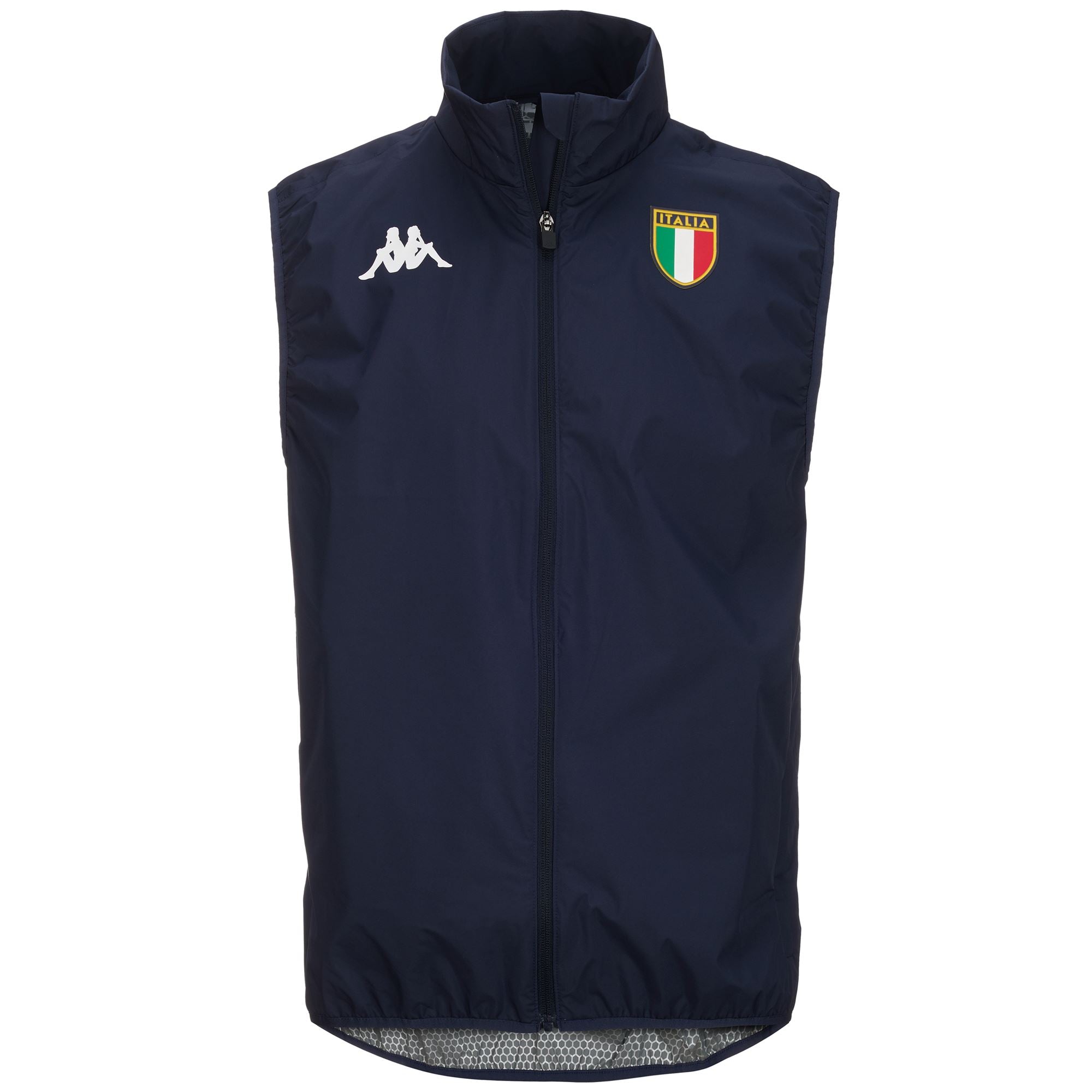 GARA. Gilet unisex in tessuto a navetta 100% poliestere. WATER & WIND PROTECTION. REGULAR FIT. Apertura full zip, tasche laterali con zip e tasche interne. Logo Omini e logo FIG stampat, logo Team patch in silicone. FEDERAZIONE ITALIANA GOLF.