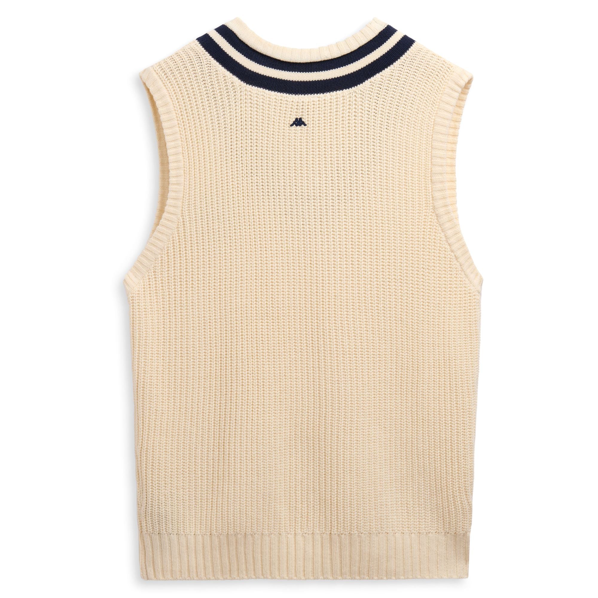 COLLEZIONE. Gilet da uomo. RELAXED FIT. Realizzato in filato di cotone in costa inglese, collo in costina con motivo a righe, ricamo sul petto. Logo Omini sul centro dietro.