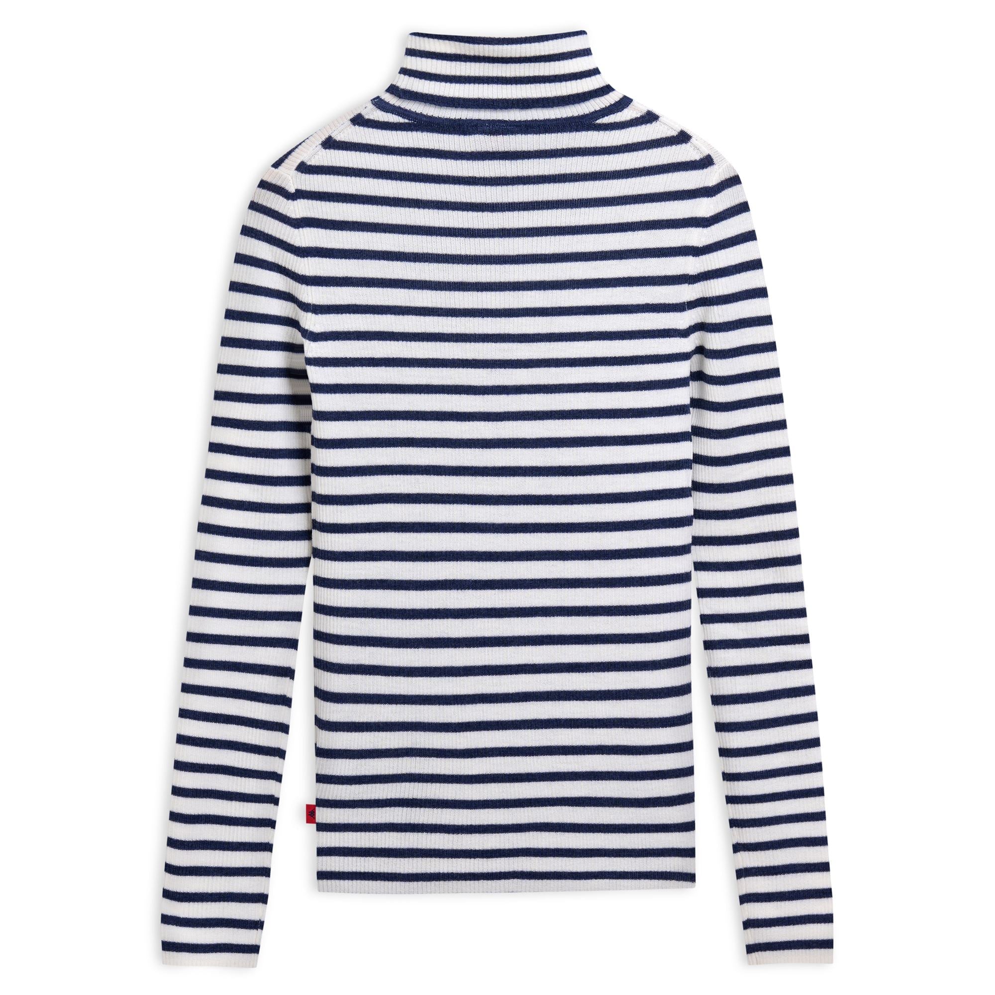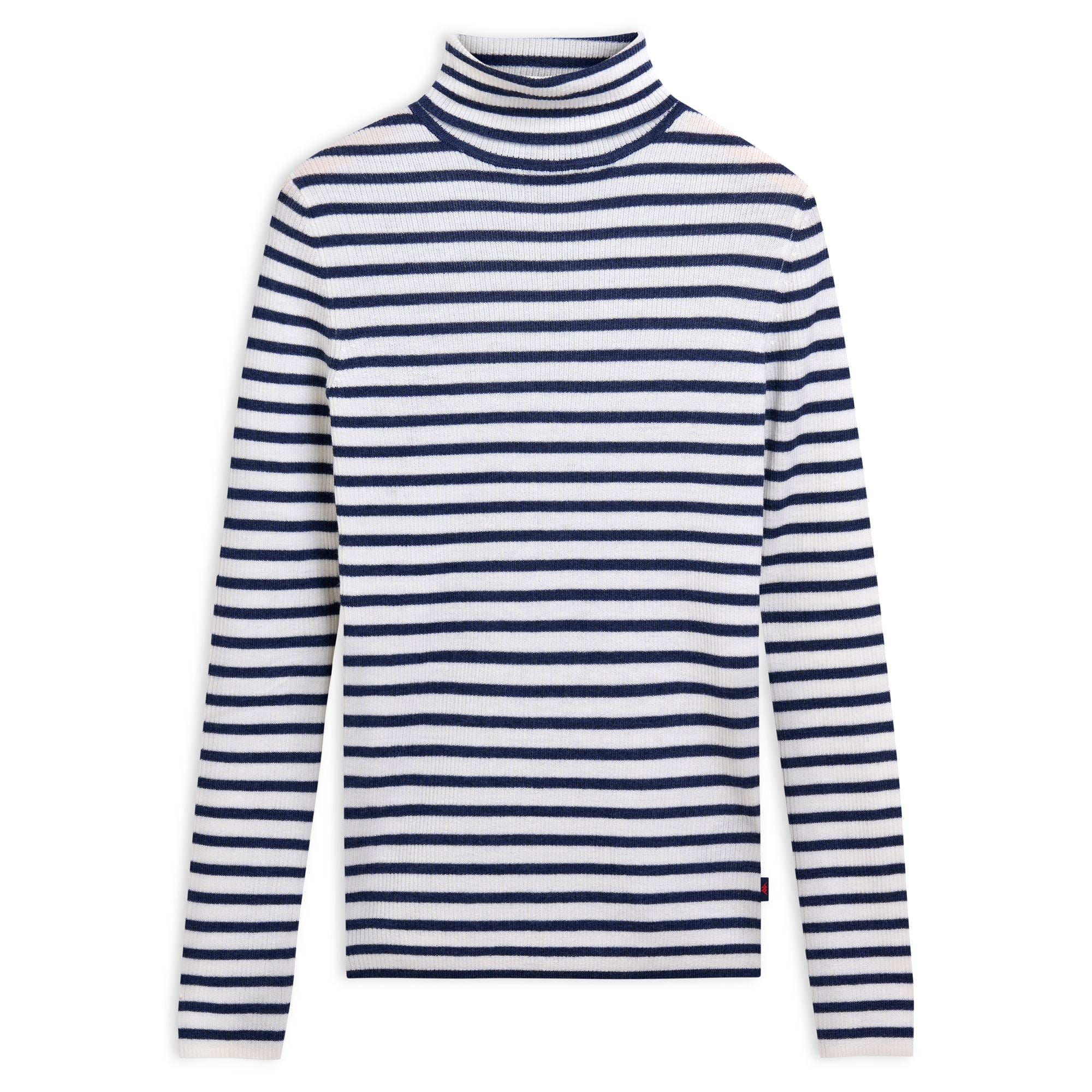 CLASSICO. Pullover dolcevita, rigato a coste. SLIM FIT. Bandierina logo sul fianco.