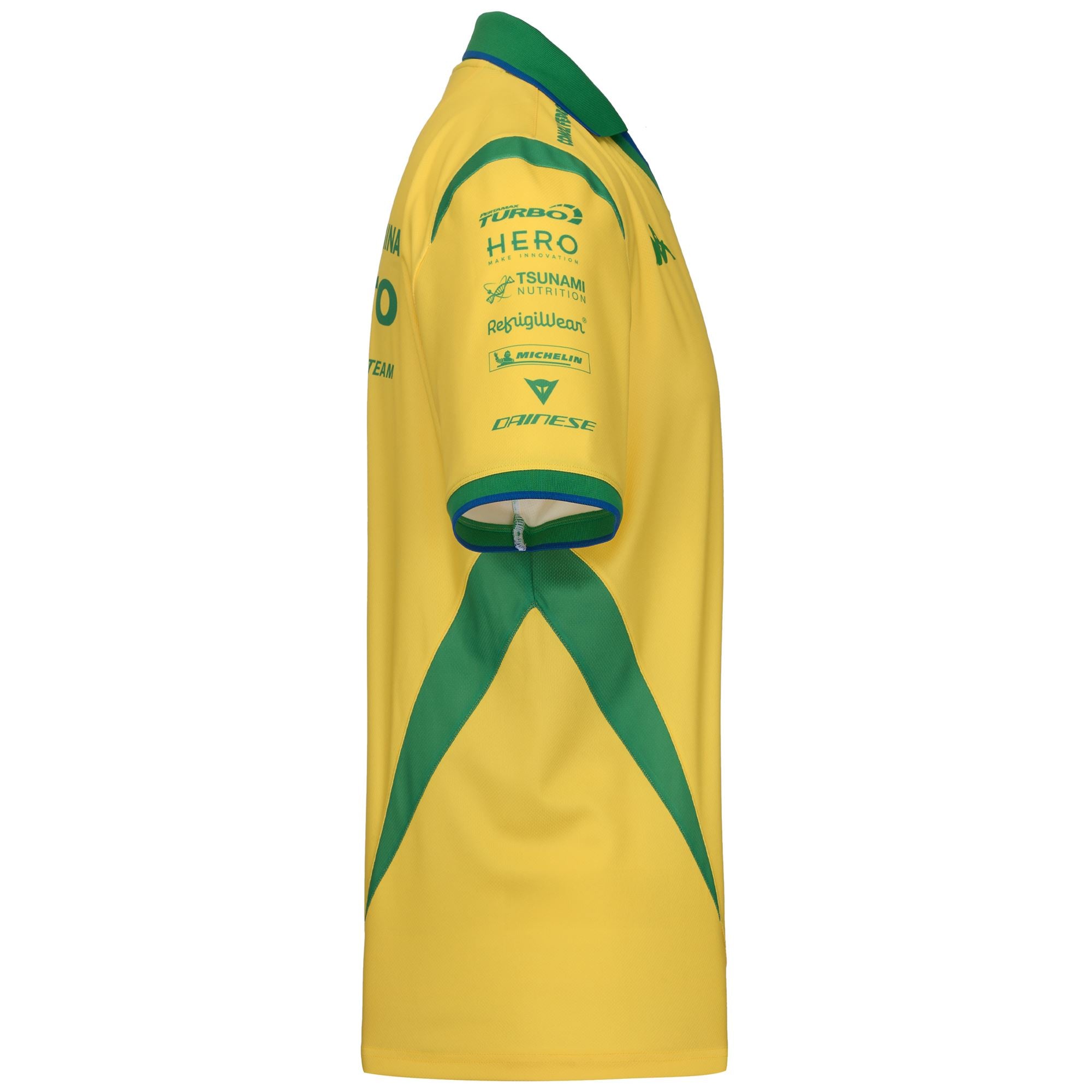 Un tributo all'unione tra il motorsport e l'anima brasiliana. Questa jersey racing è caratterizzata da una base verde con dettagli oro, che richiamano i colori iconici del Brasile.