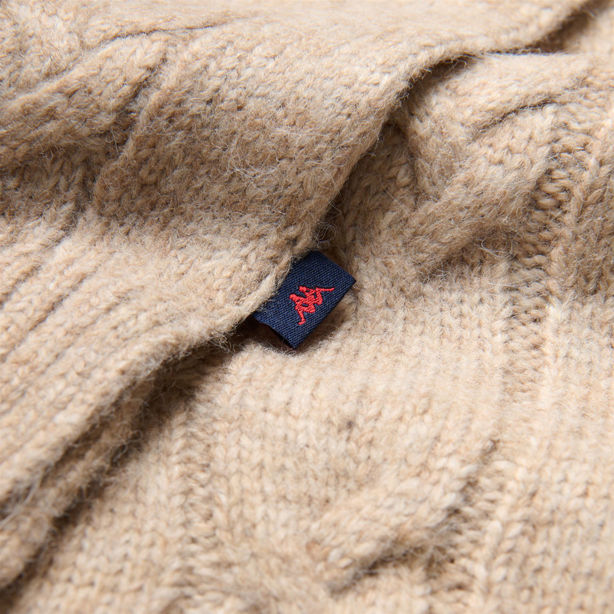 COLLEZIONE. Sciarpa con trecce. Bordo in costina. Bandierina logo.