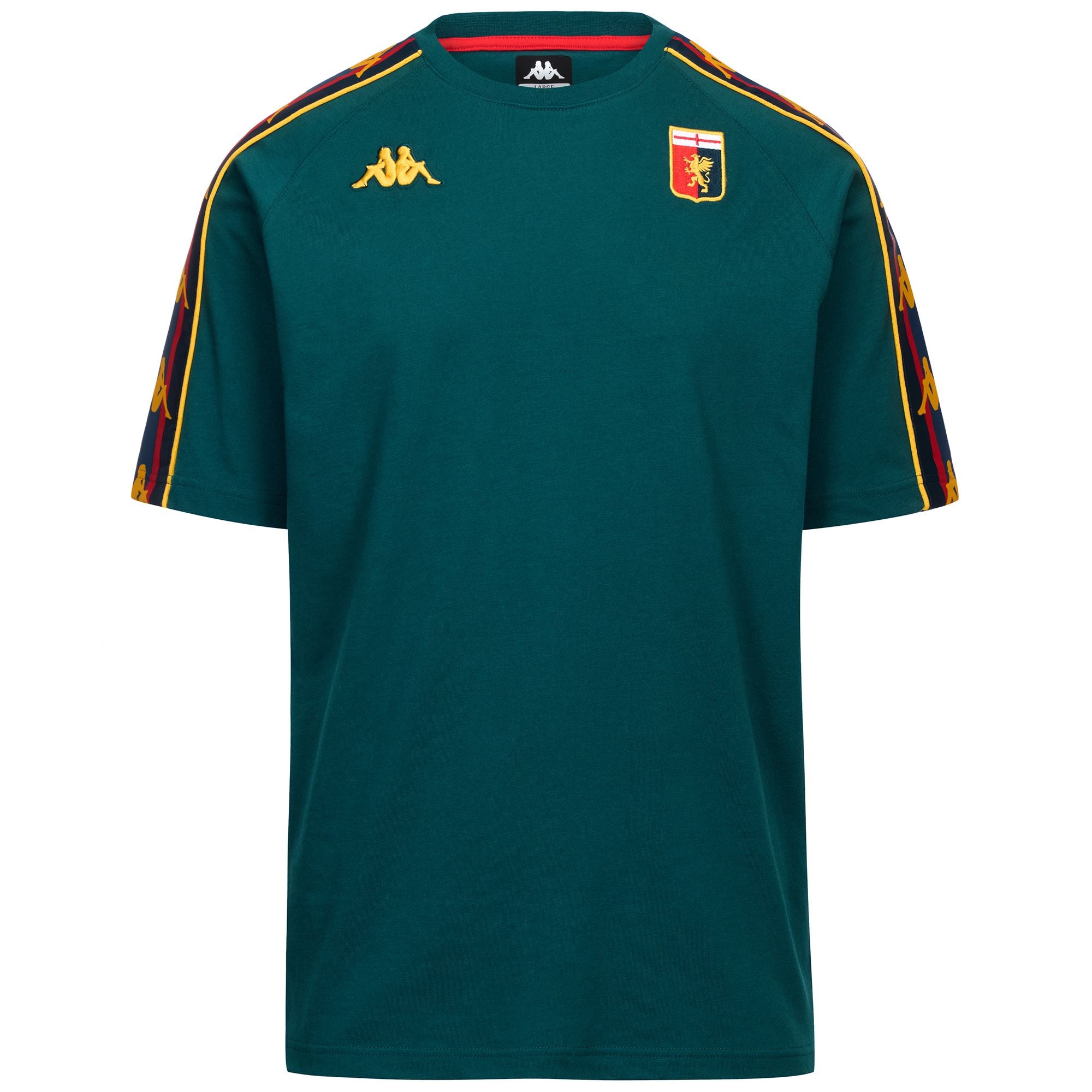 GARA. Maglia da uomo in tessuto jersey REGULAR FIT. Manica corta, girocollo. Logo Omini in ricamo 3D sul fronte e sul retro, logo Team ricamato sul fronte, lettering del Team ricamato sul retro, Banda Omini sulle maniche. GENOA CFC.