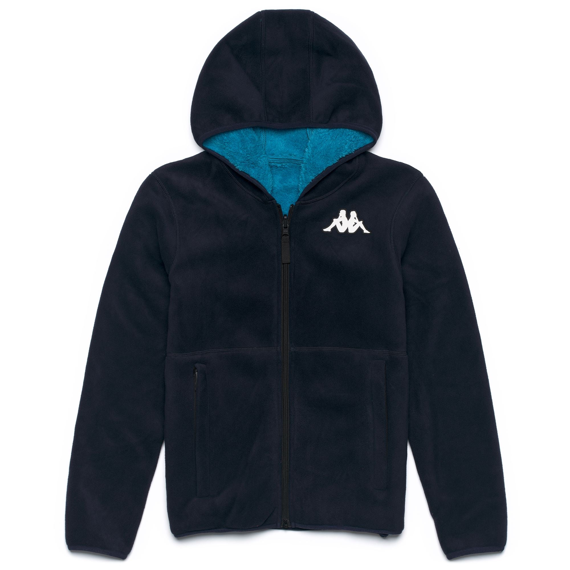 SPORT. Unisex reversible polar fleece in sherpa fabric. REGULAR FIT. Hood, front zip opening, side zip pockets, binding on hem. Silicone Omini Logo.