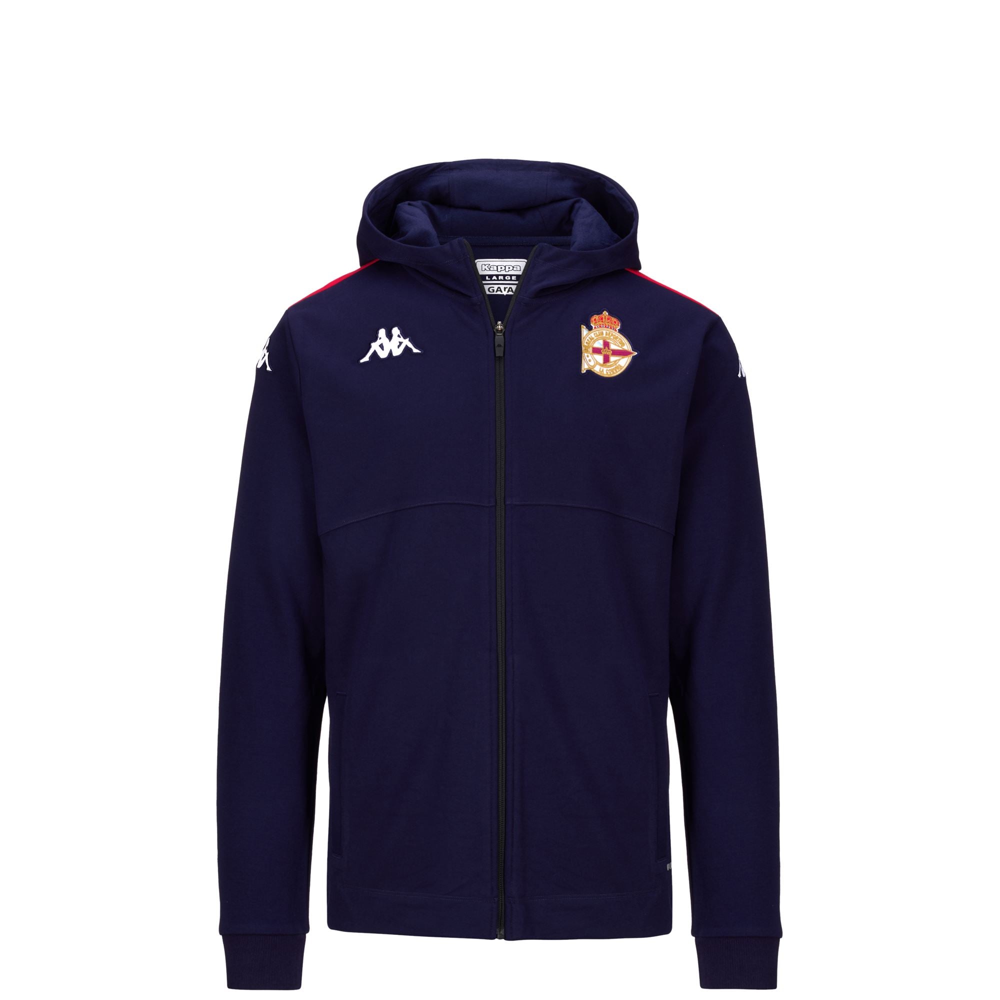GARA. Official sweat for man in interlock fabric. SLIM FIT. Hooded, full zip opening, insert on shoulders and on sides, pockets without zip, cuffs in rib. Omini logo on chest and on sleeves embroidered. Team logo in silicon on chest. Lettering and flag embroidered on back. RC DEPORTIVO LA CORUNA.