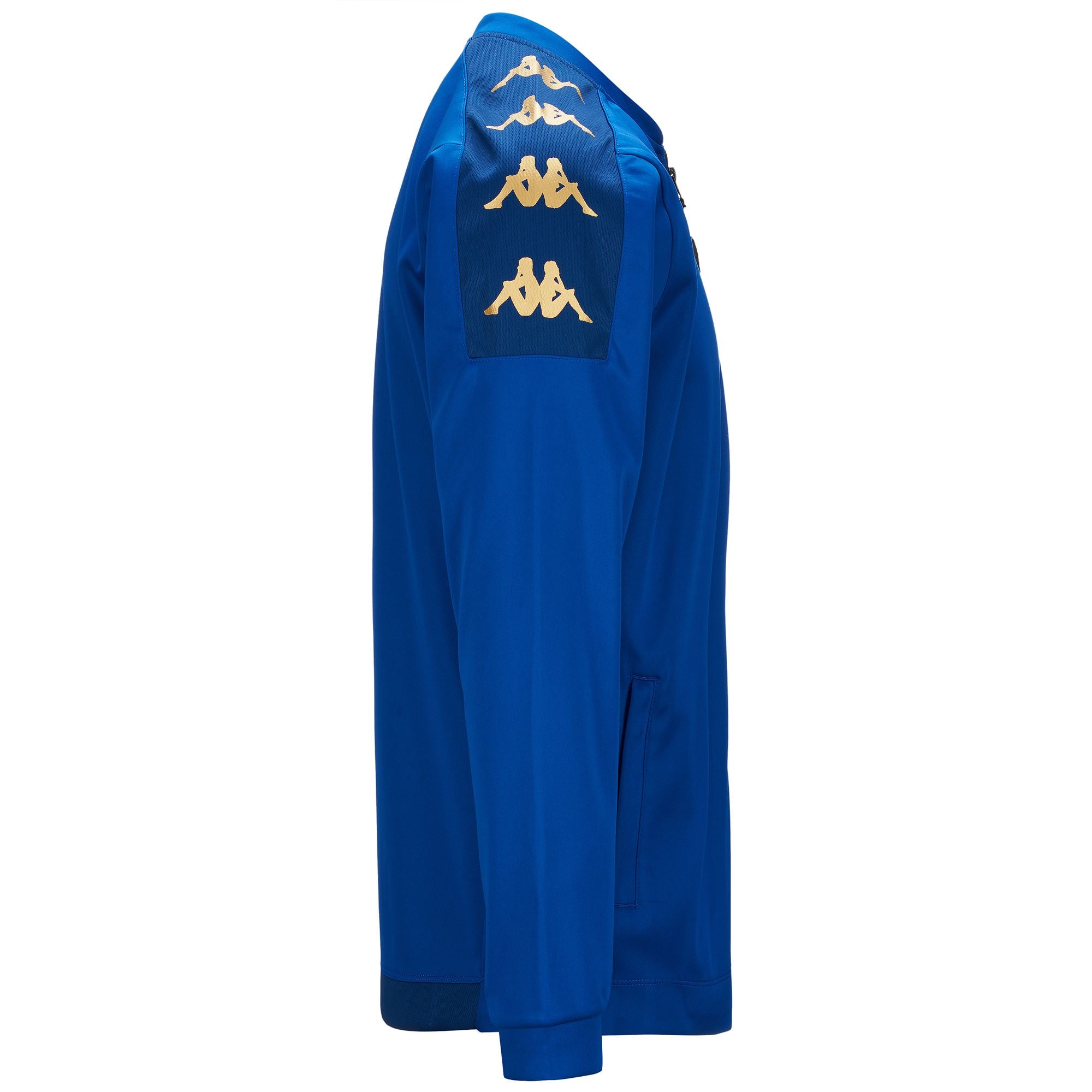 KAPPA4TEAM. Training sweat for man in bonded interlock fabric. SLIM FIT. Full zip opening, pockets with zip. Omini logo on front and Omini banda on shoulders printed.