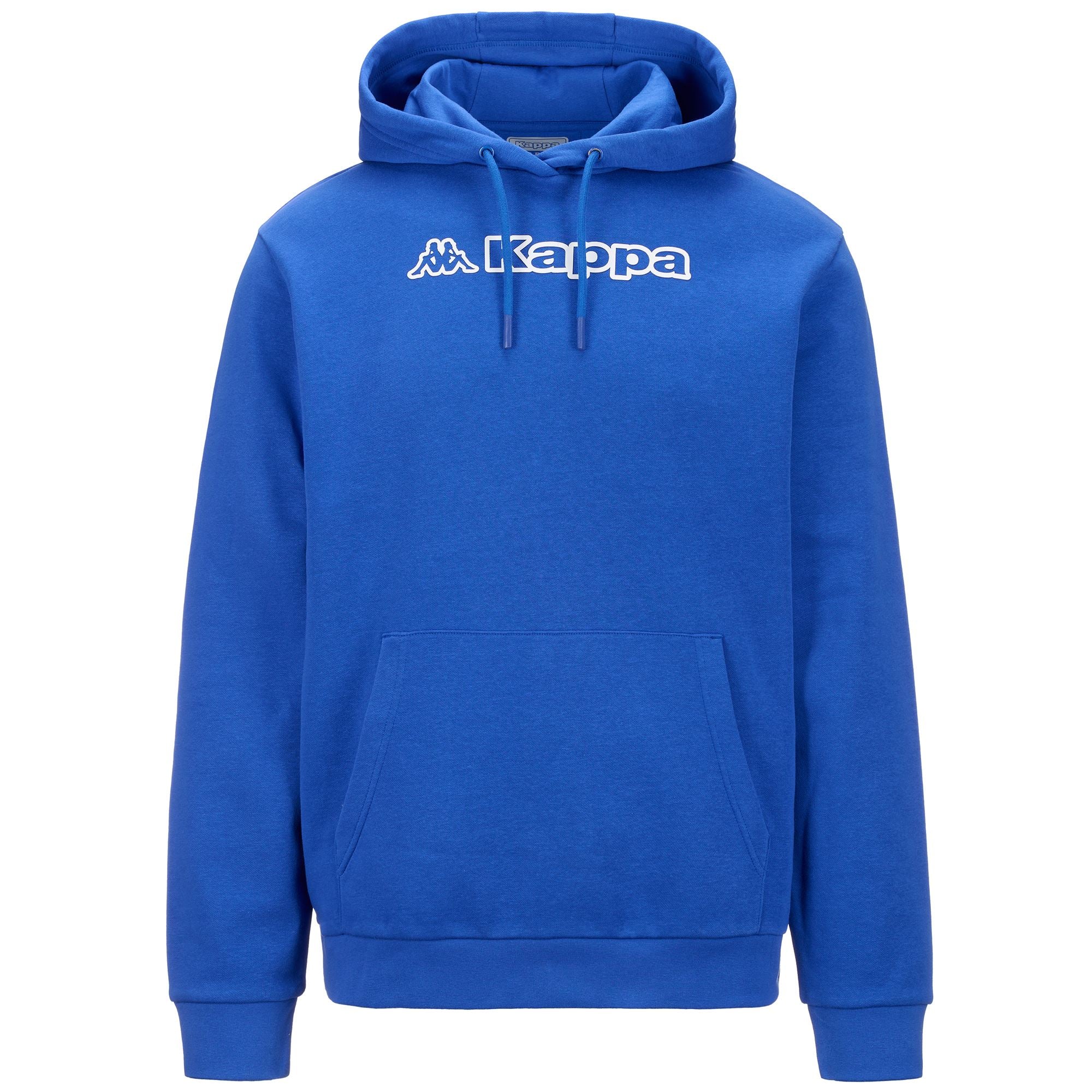 LOGO. Men's hooded sweatshirt made of brushed fleece. REGULAR FIT. Long sleeve, kangaroo pocket. Fleece bottom and cuffs in rib. Omini logo and HD printed Kappa lettering on the chest.