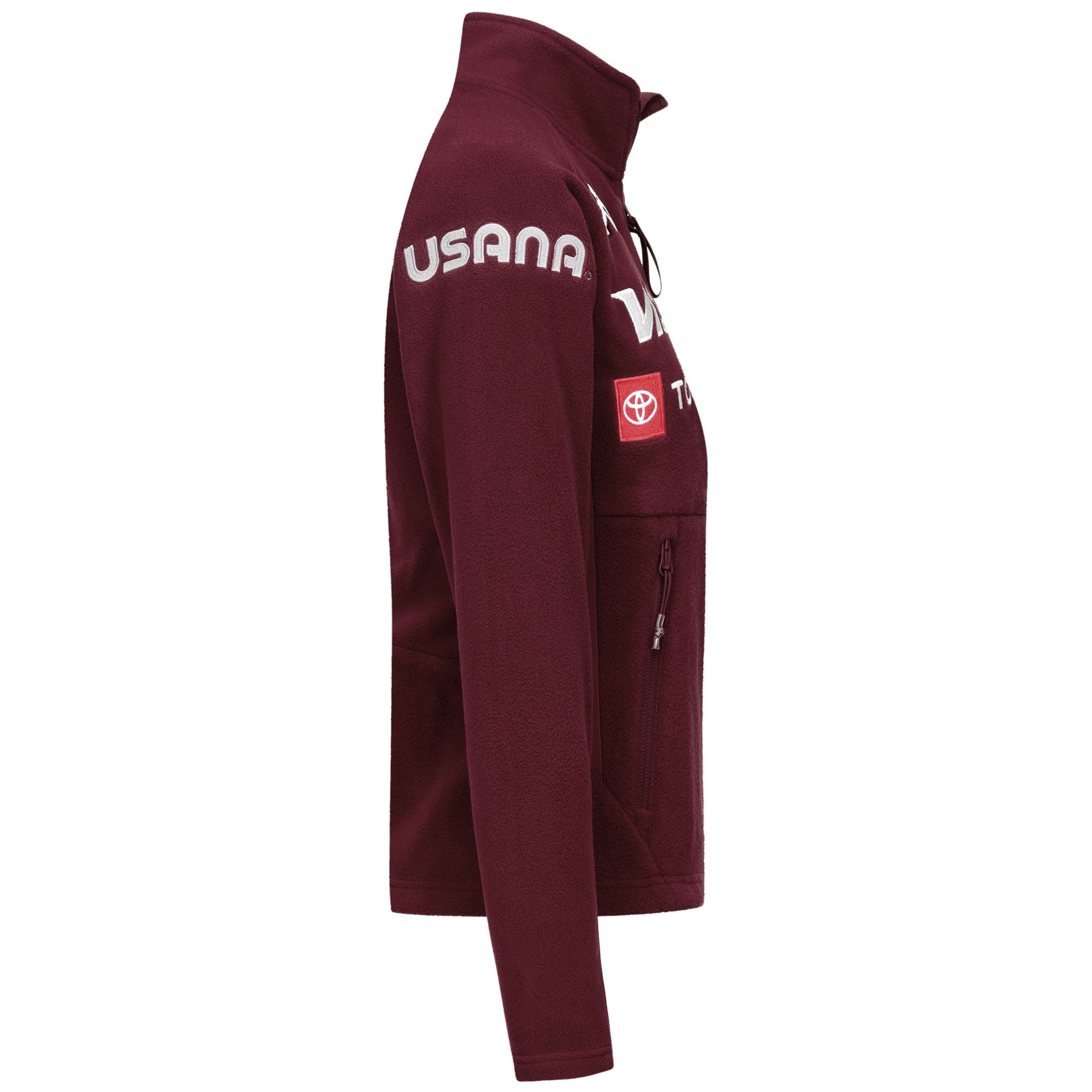 Women’s fleece made from anti-pilling polyester fleece with stretch fabric inserts for enhanced freedom of movement and comfort. Slim fit ensures a close, functional fit. Features a full-front zip and zippered pockets for practicality and secure storage of personal items. Distinctive details include the Omini logo and US Ski and Snowboard Team customizations.