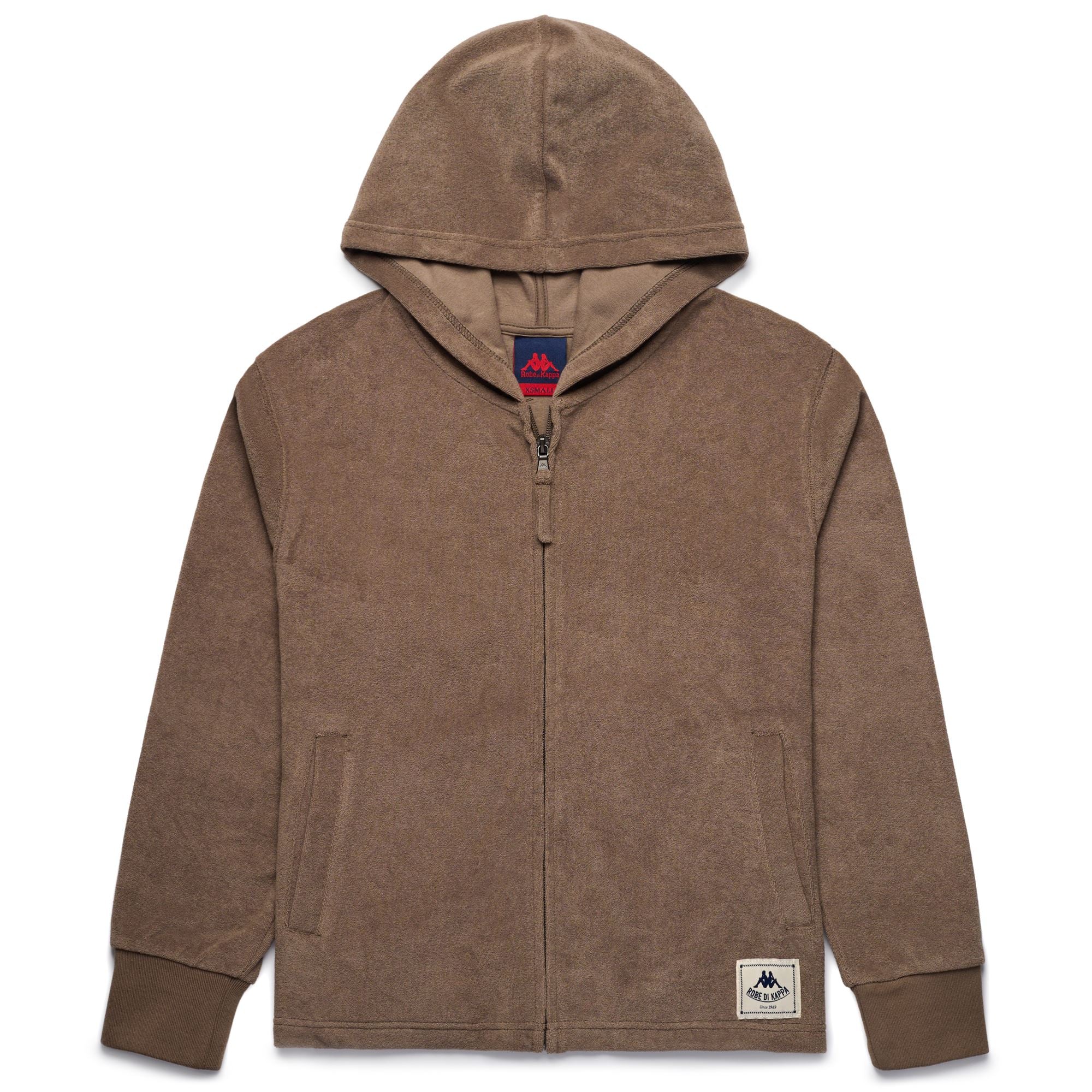 COLLEZIONE. Woman sweat in towel fleece. REGULAR FIT. Hood, long sleeves zip and rib borders. Jacquard label applied with Robe di Kappa customization.