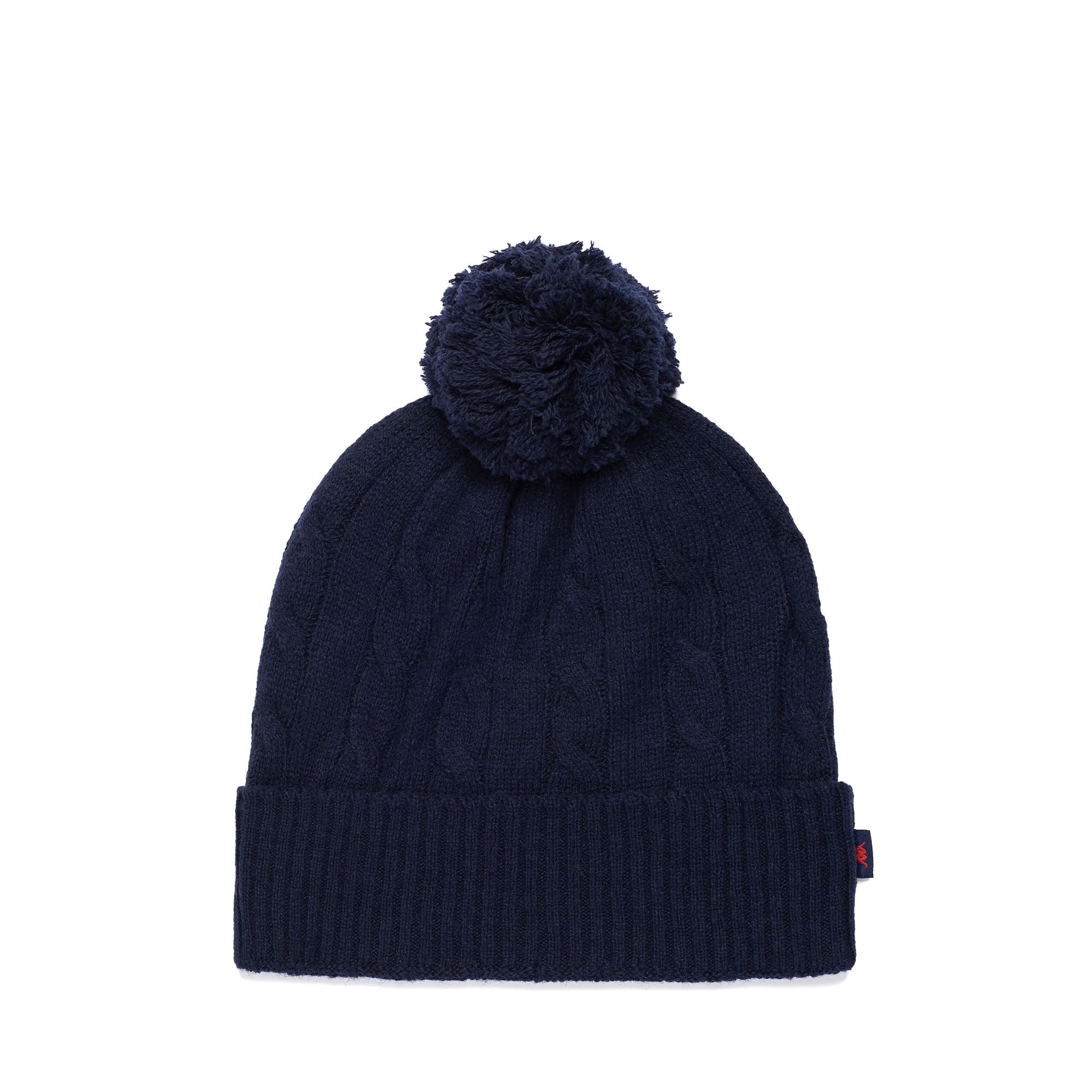 CLASSICO. Pon pon hat in lambswool. Cable knit. Flag logo.