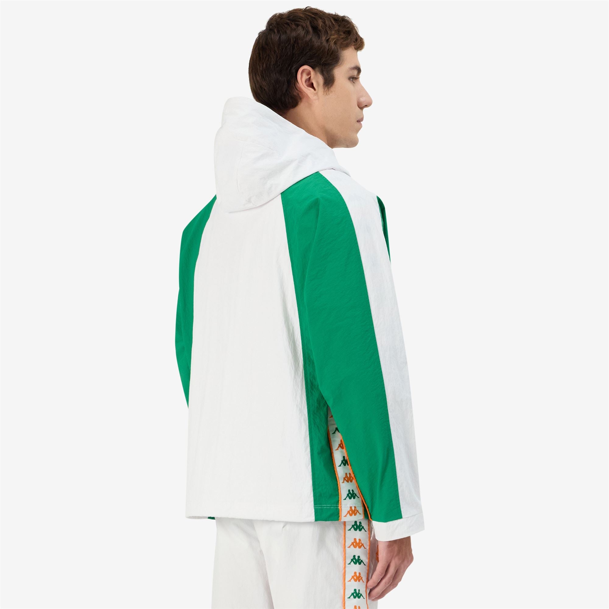 Front zipper opening, two side pockets with zip, banda tapes jacquard applied on sides and on the lower part of the sleeves.