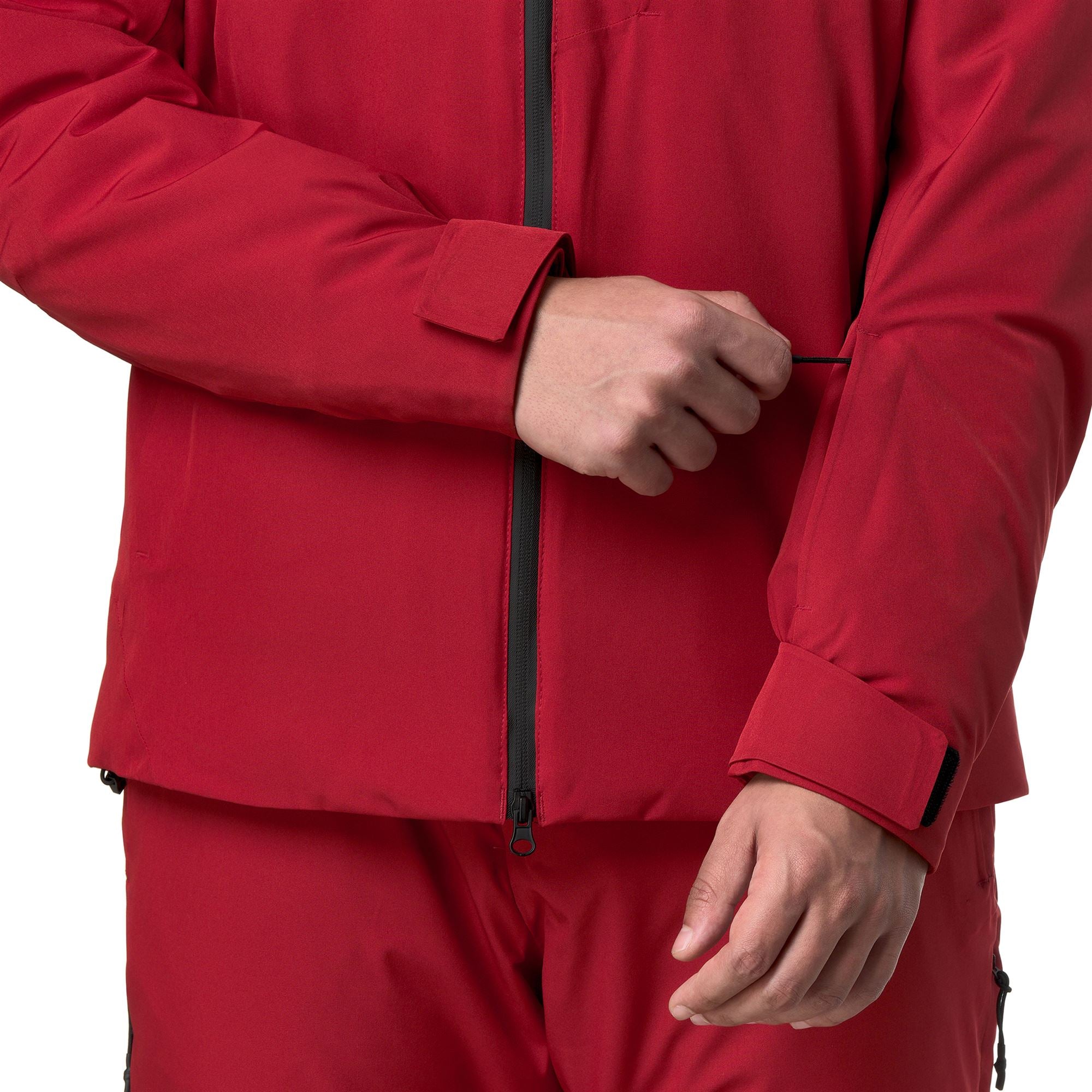 Men’s padded ski jacket made from 2-layer stretch fabric, featuring WATERPROOF PROTECTION 10,000 mm H₂O, BREATHABILITY 10,000 g/m²/24h, and PFC-free water-repellent treatment. The differentiated insulation provides targeted warmth: 120 g on the body, 100 g on the arms, and 80 g on the collar and hood, ensuring comfort and freedom of movement. Slim fit ensures a close, technical fit. Features include a detachable hood, flap pockets with zip closure, ventilation zips, internal snow gaiter, elastic cuffs, taped seams, and customizable adjustments. The design is completed with the applied 8CENTO logo and applied Omini logo.