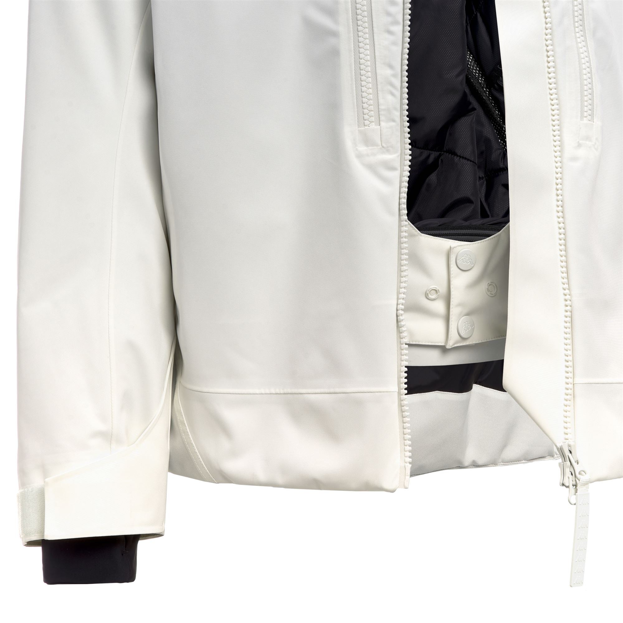 The regular fit ensures freedom of movement, while reinforced shoulders and hem increase durability and protection against the elements. Additional features include a detachable hood, flap pockets with zip closure, ventilation zips, internal snow gaiter, elastic cuffs, taped seams, and customizable adjustment systems.