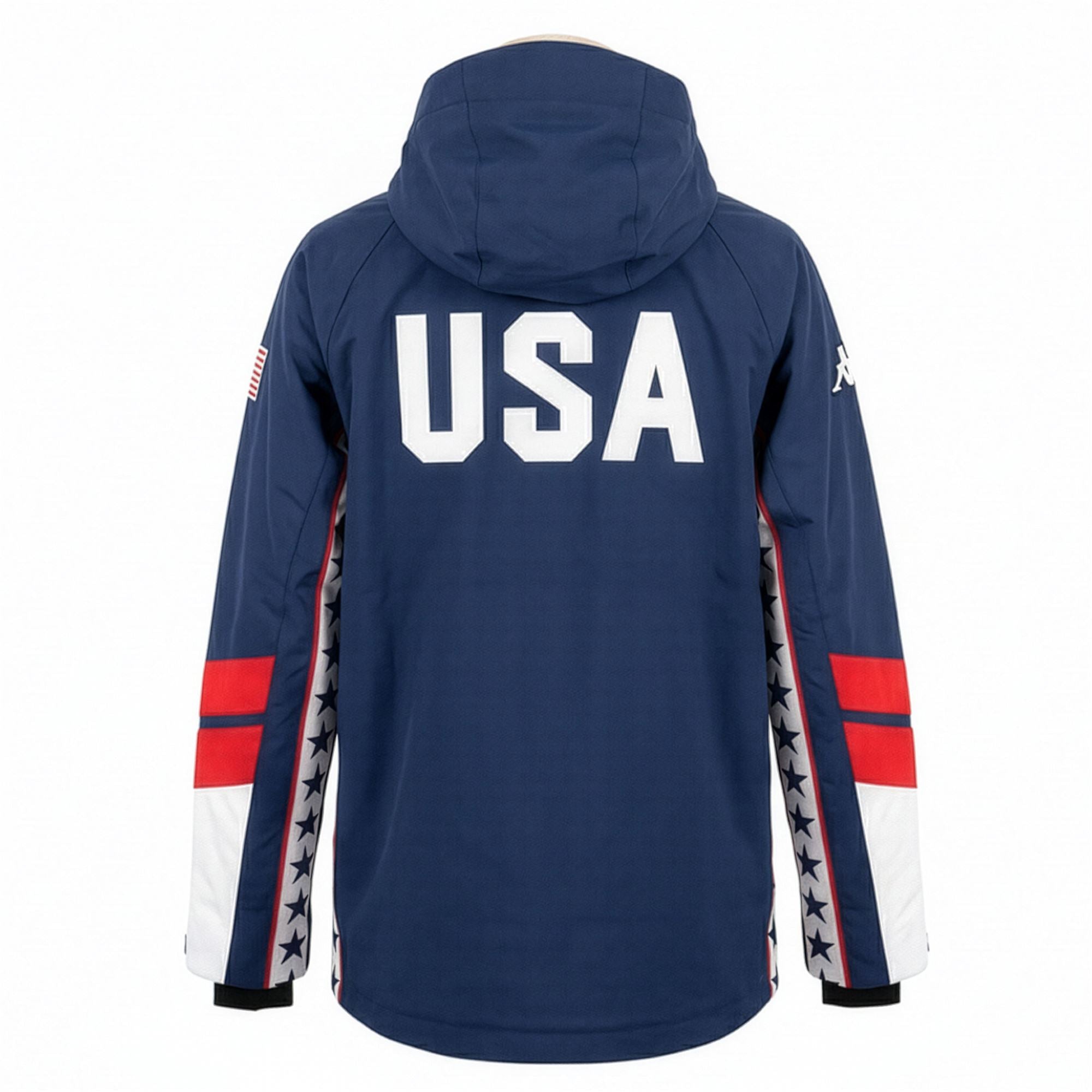 GARA. Unisex padded anorak jacket. REGULAR FIT. Waterproof 20000MM, breathable 20000gr/m2/24h. 2 layers polyester stretch fabric. Padding THERMOLITE MICRO® 40gr. Side full zip opening. Multipockets waterproof zip and adjustable hood. Heat sealed seams. Team personalizations and Kappa logos. USA.