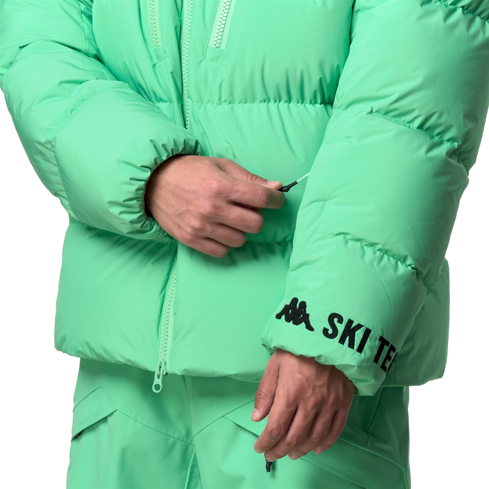 The regular fit cut ensures freedom of movement, while reinforced shoulders and hem increase durability and protection against the elements. Additional features include a detachable hood, flap pockets with zip closure, ventilation zips, internal snow gaiter, elastic cuffs, taped seams, and customizable adjustment systems. The design is completed with distinctive details: Omini logo, Ski Team lettering, and embroidered Ski patch.
