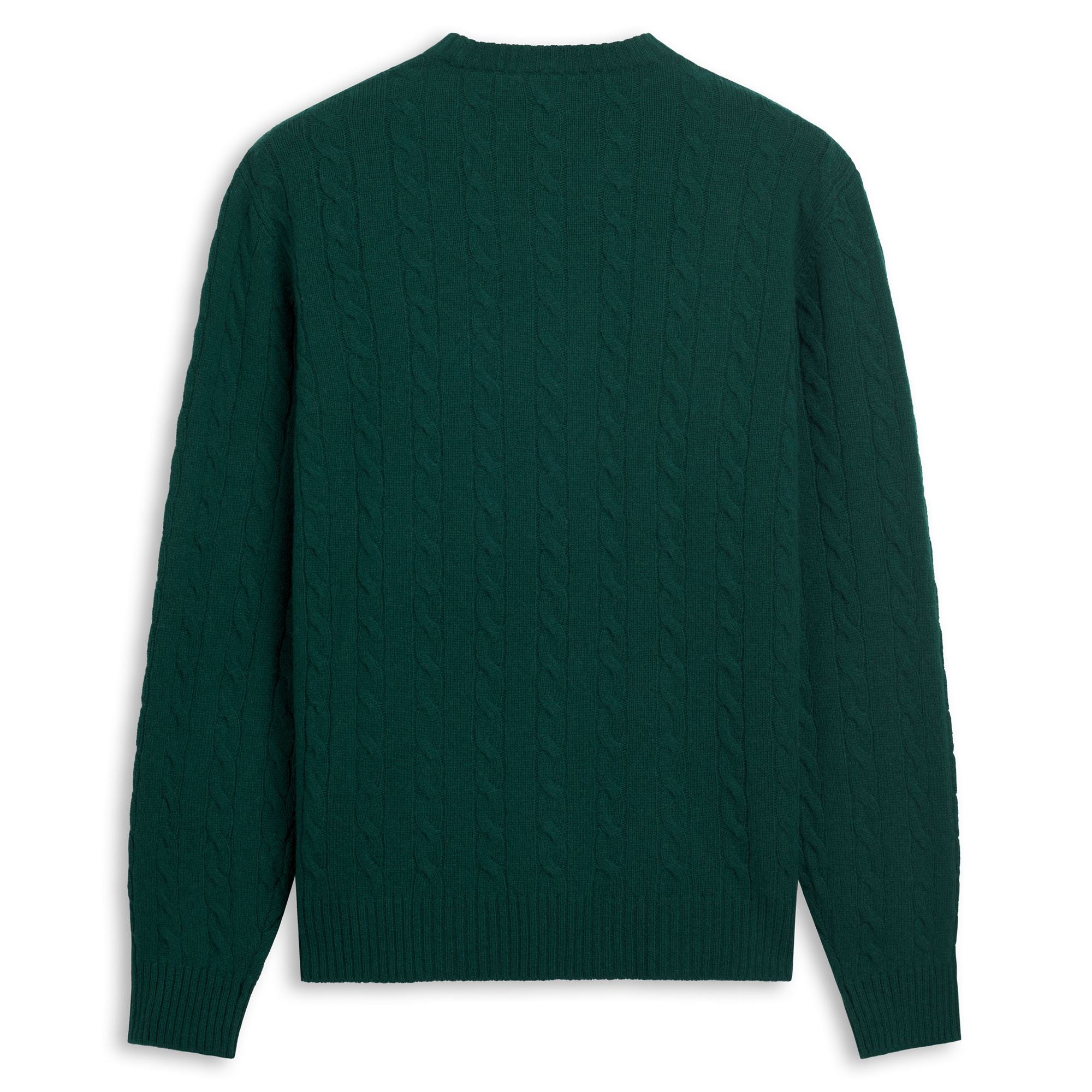 CLASSICO. Roundneck pullover in lambswool. CLASSIC FIT. Cable knit, embroidery on chest. Rib borders. Omini patch on chest.