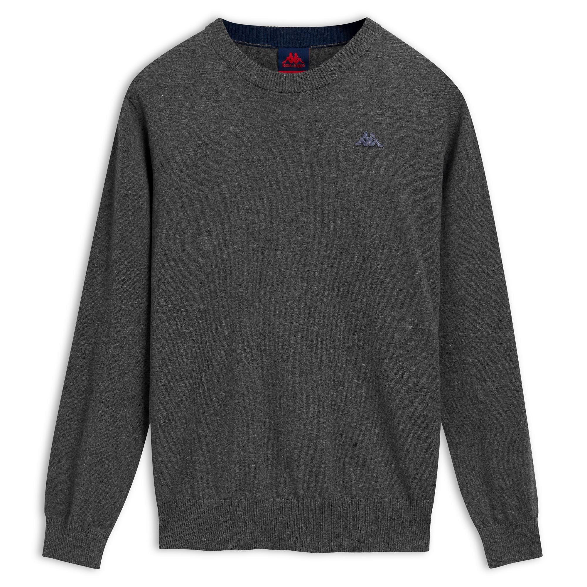 CLASSICO. R-neck pullover, in mixed cotton cashmere. SLIM FIT. Ribbed borders. Omini Logo applied on chest.