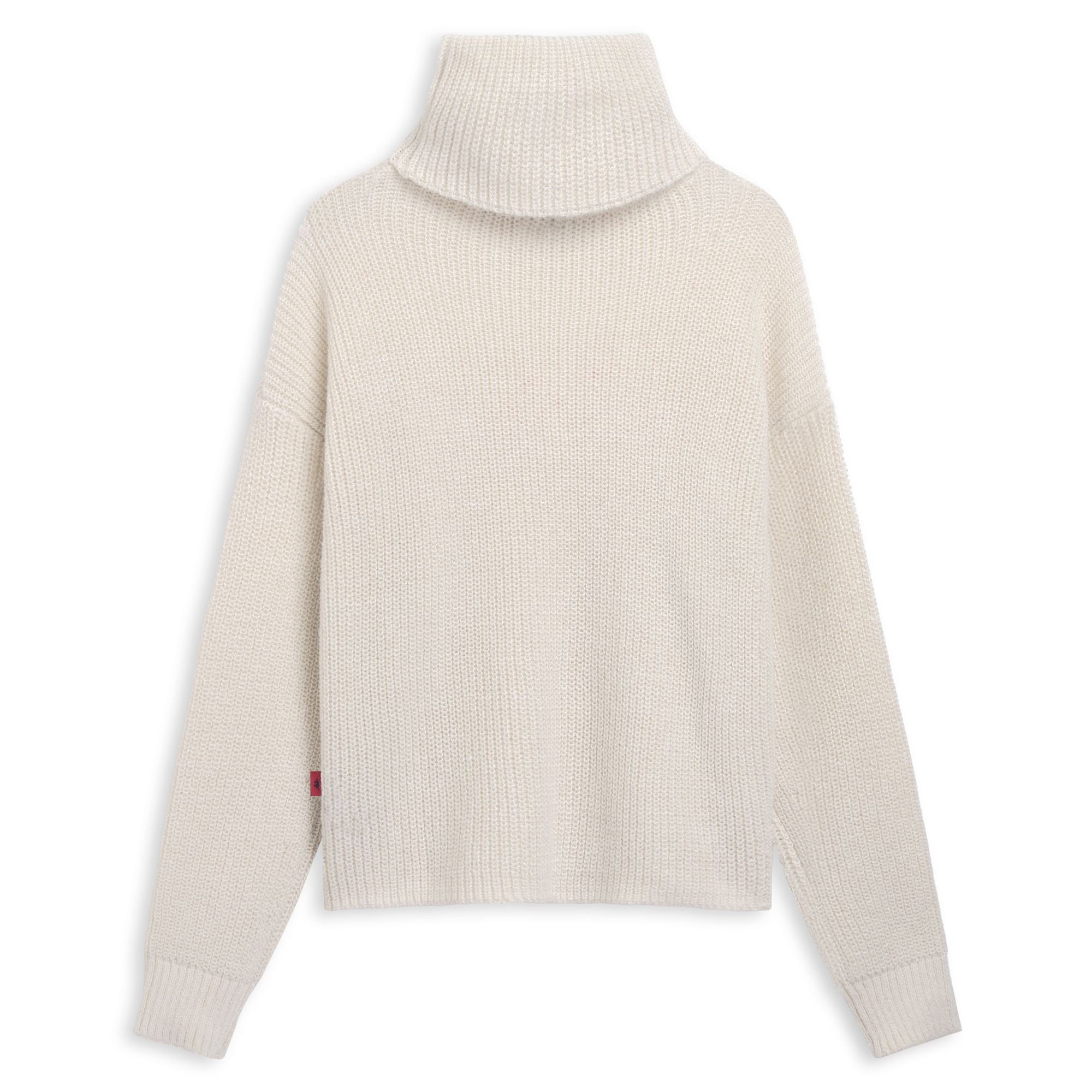 CLASSICO. Pullover donna mixed yarn with recycled polyester and lurex. REGULAR FIT. Turtle neck, cardigan stitch, long sleeves, ricamo sul petto. Omini patch on chest.