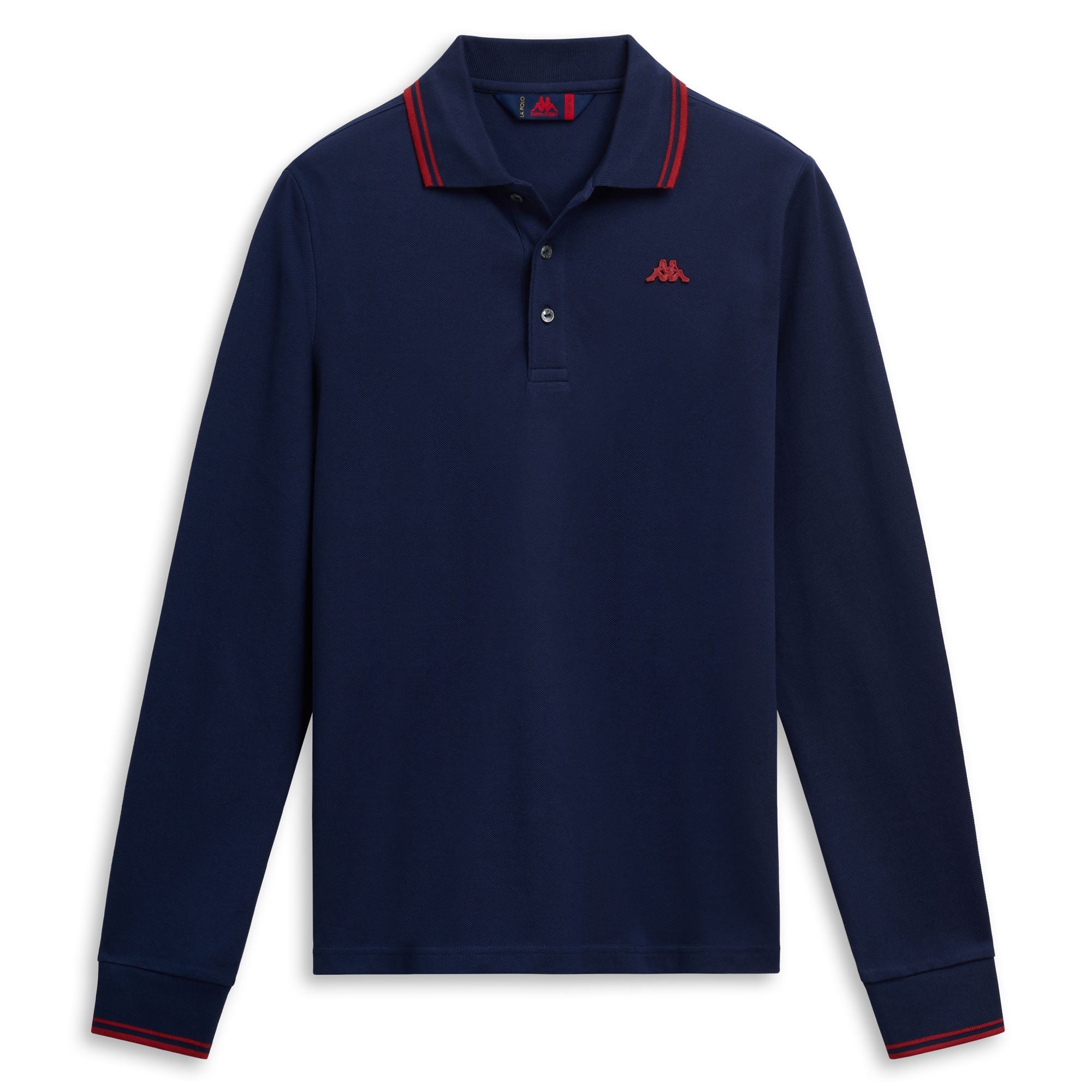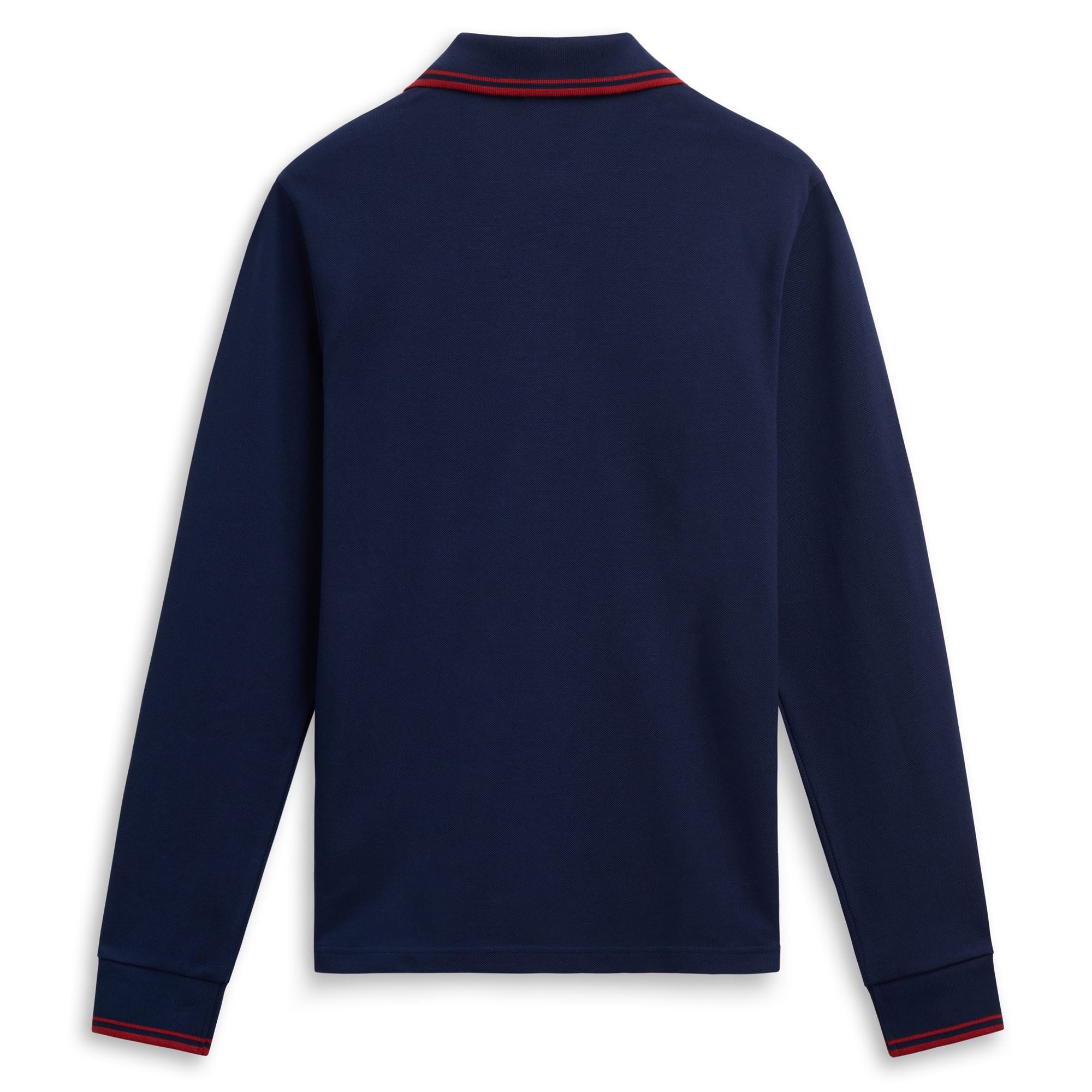 CLASSICO. Polo long sleeves in cotton piquè. SLIM FIT. Collar and sleeves border in flat knit rib in plain color with striped borders, front placket with personalized nacre buttons. Omini patch applied on chest.