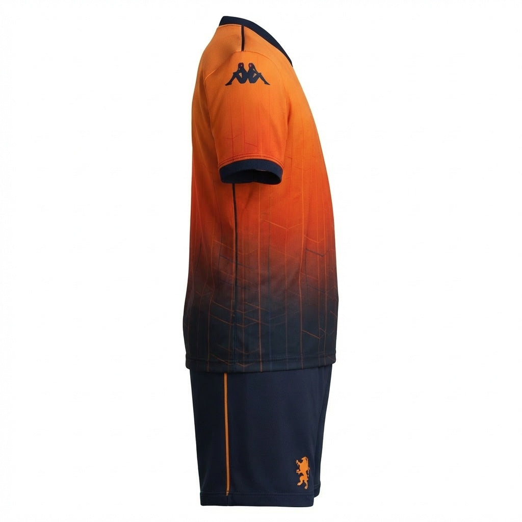Introducing the KOMBAT KIT 2026 FOURTH GENOA GARA, the official KOMBAT™ replica set in premium interlock fabric. Featuring a regular fit, raglan sleeves, and a round neck, it ensures comfort and freedom of movement, while shorts with elastic waistband and drawcord provide a secure fit. Sublimated graphics and heat-applied logos complete the look. Inspired by Genoa’s link to music and Kappa’s iconic festival, the design reflects shared energy through colors and textures of the Stadio Luigi Ferraris and Parco Dora.