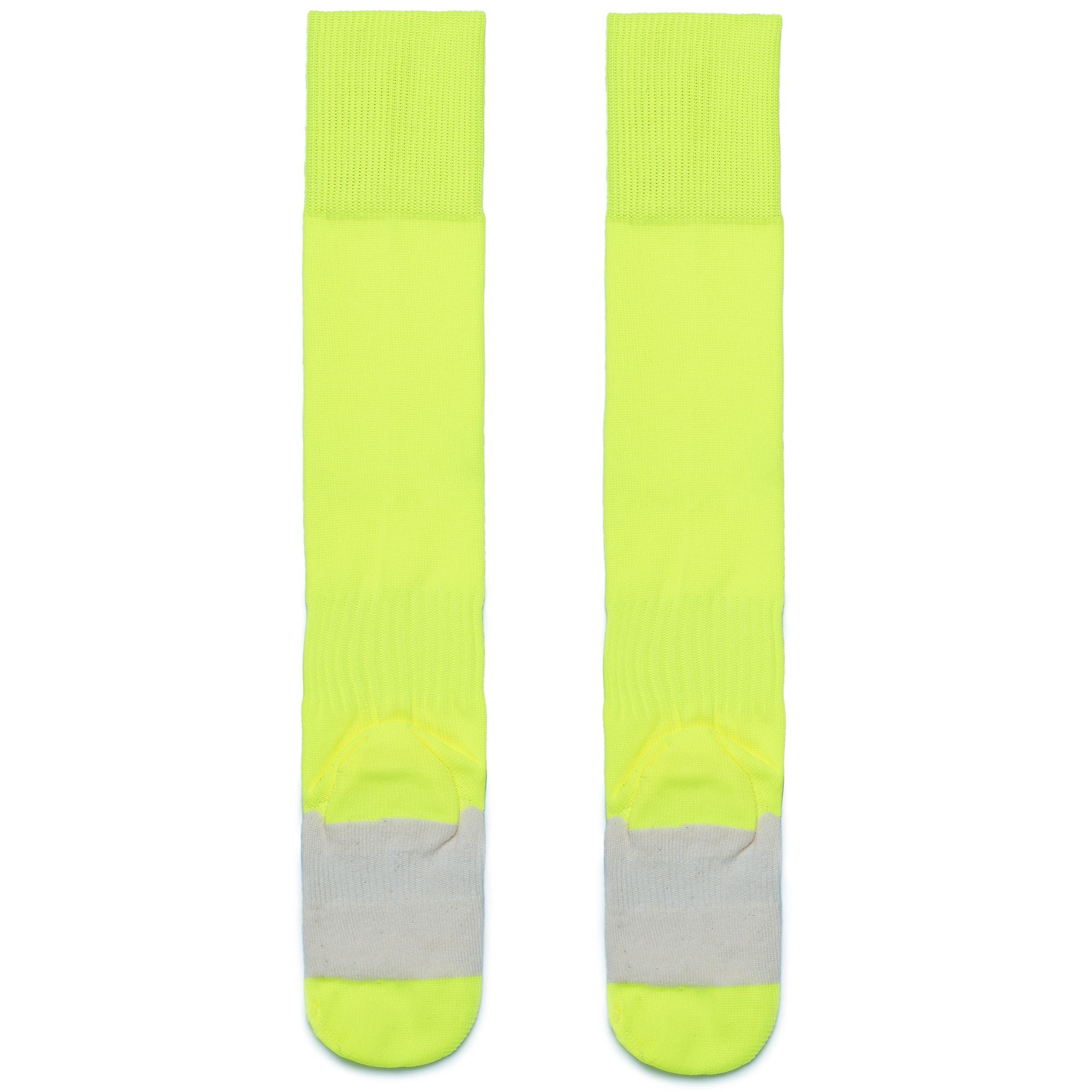 KAPPA4TEAM. Game or training socks in polyamide stretch fiber. Knee high length, ventilation area at the foot center for better breathability. Omini Logo on front in jacquard. 3 pair packaging.