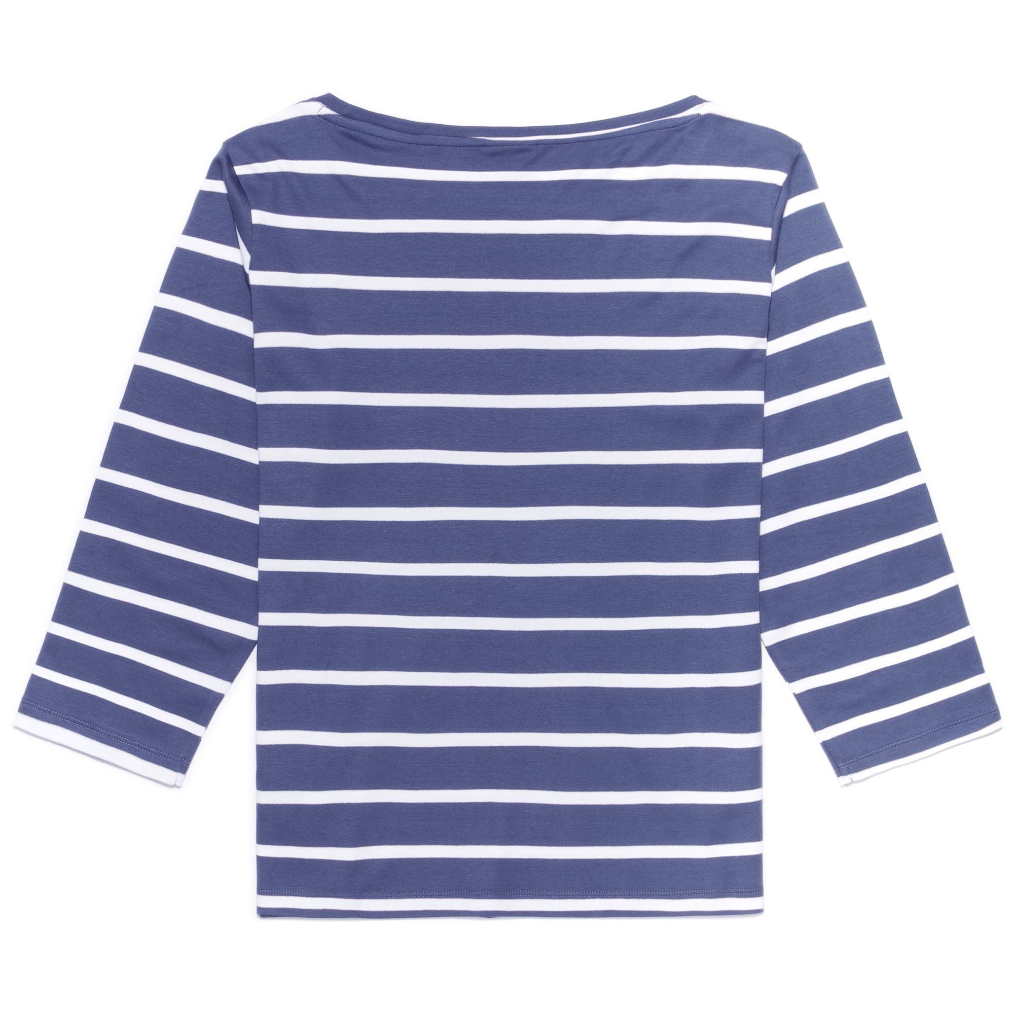CLASSICO. Woman t-shirt in y/dyed striped cotton interlock. REGULAR FIT. Boat neck, 3/4 length sleeve. Omini logo on chest.