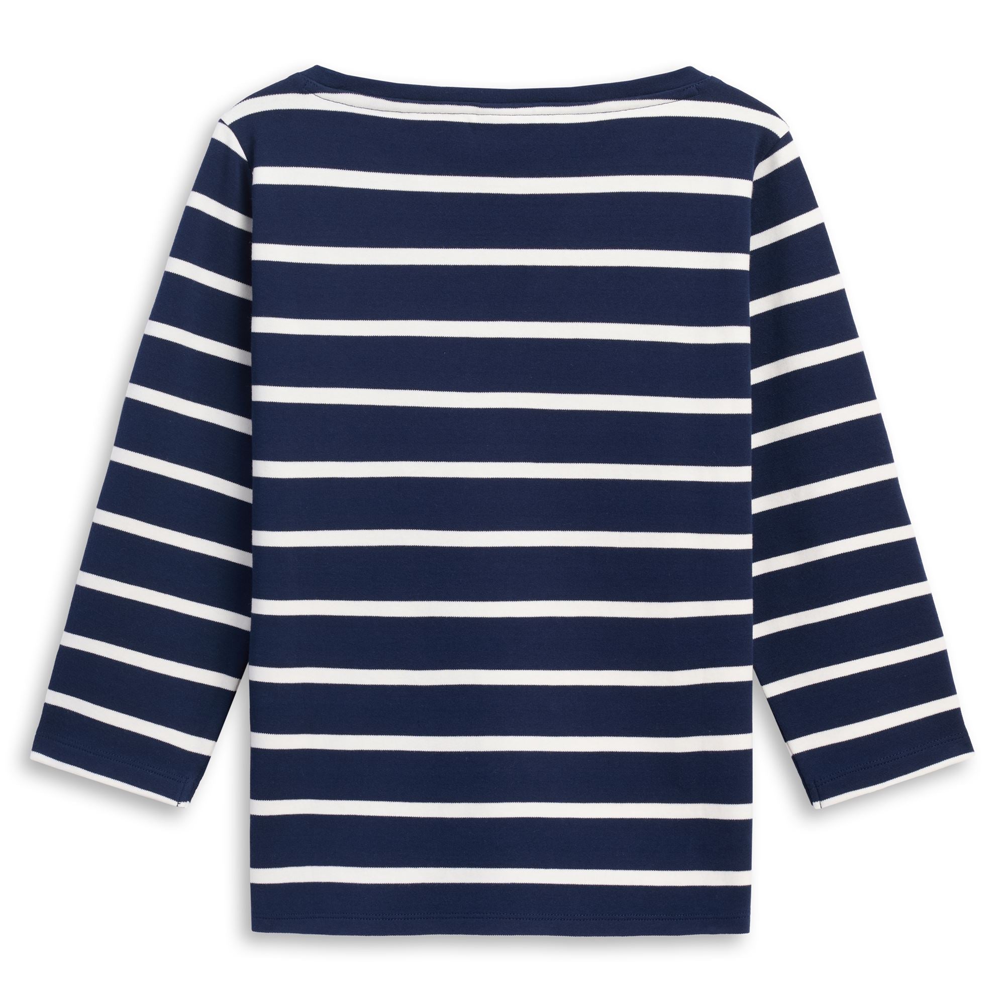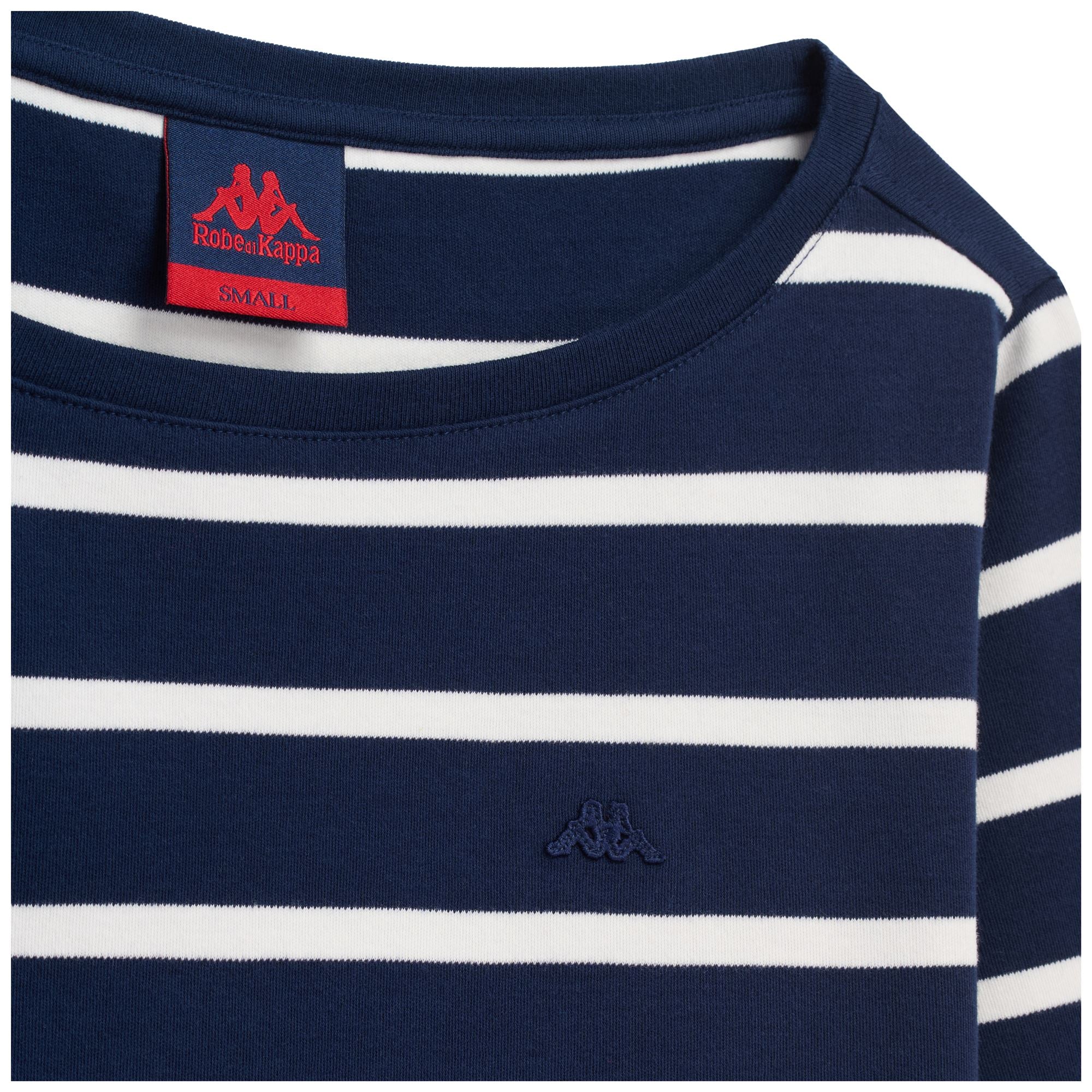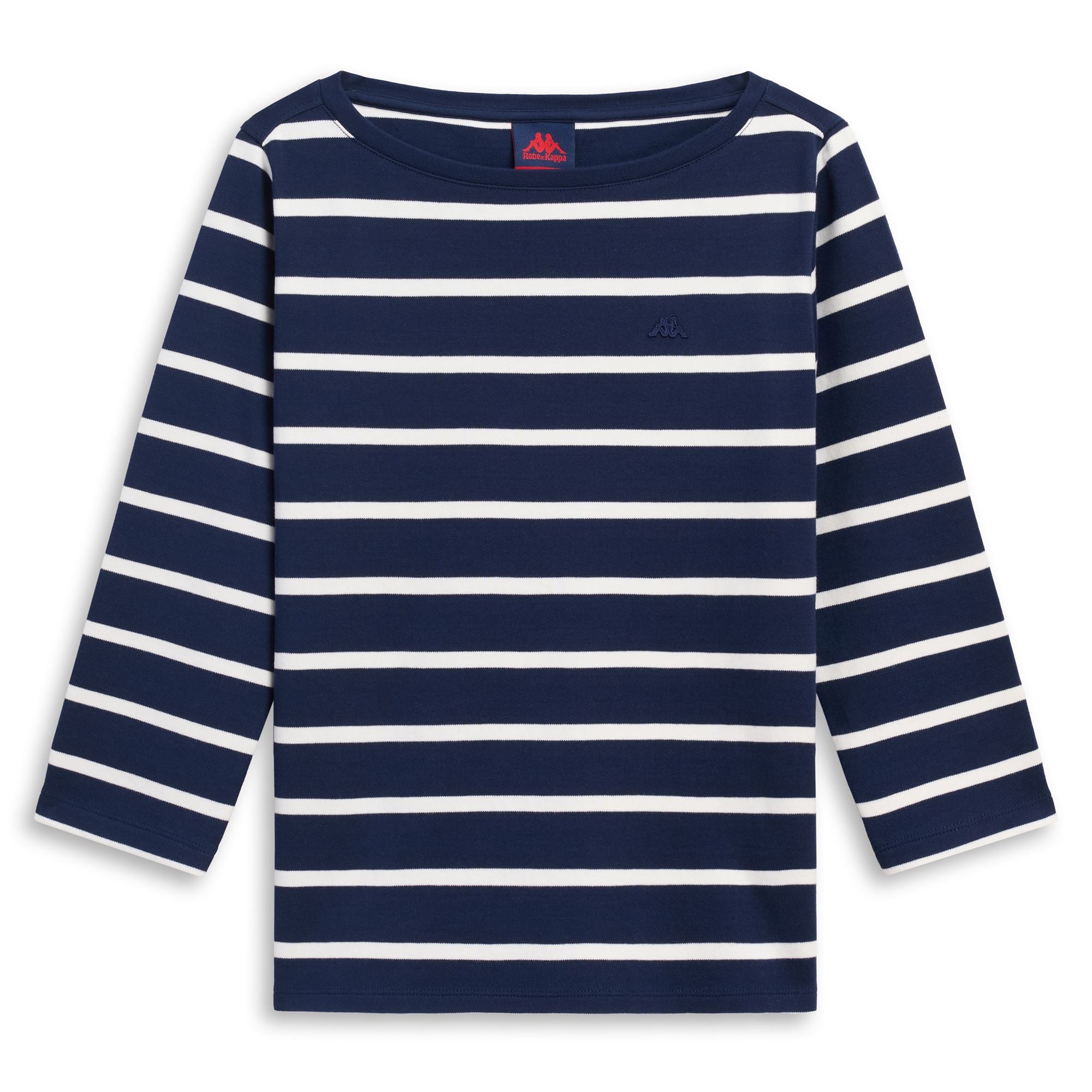 CLASSICO. Woman t-shirt in y/dyed striped cotton interlock. REGULAR FIT. Boat neck, 3/4 length sleeve. Omini logo on chest.
